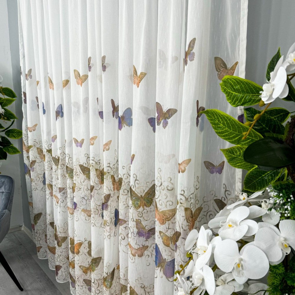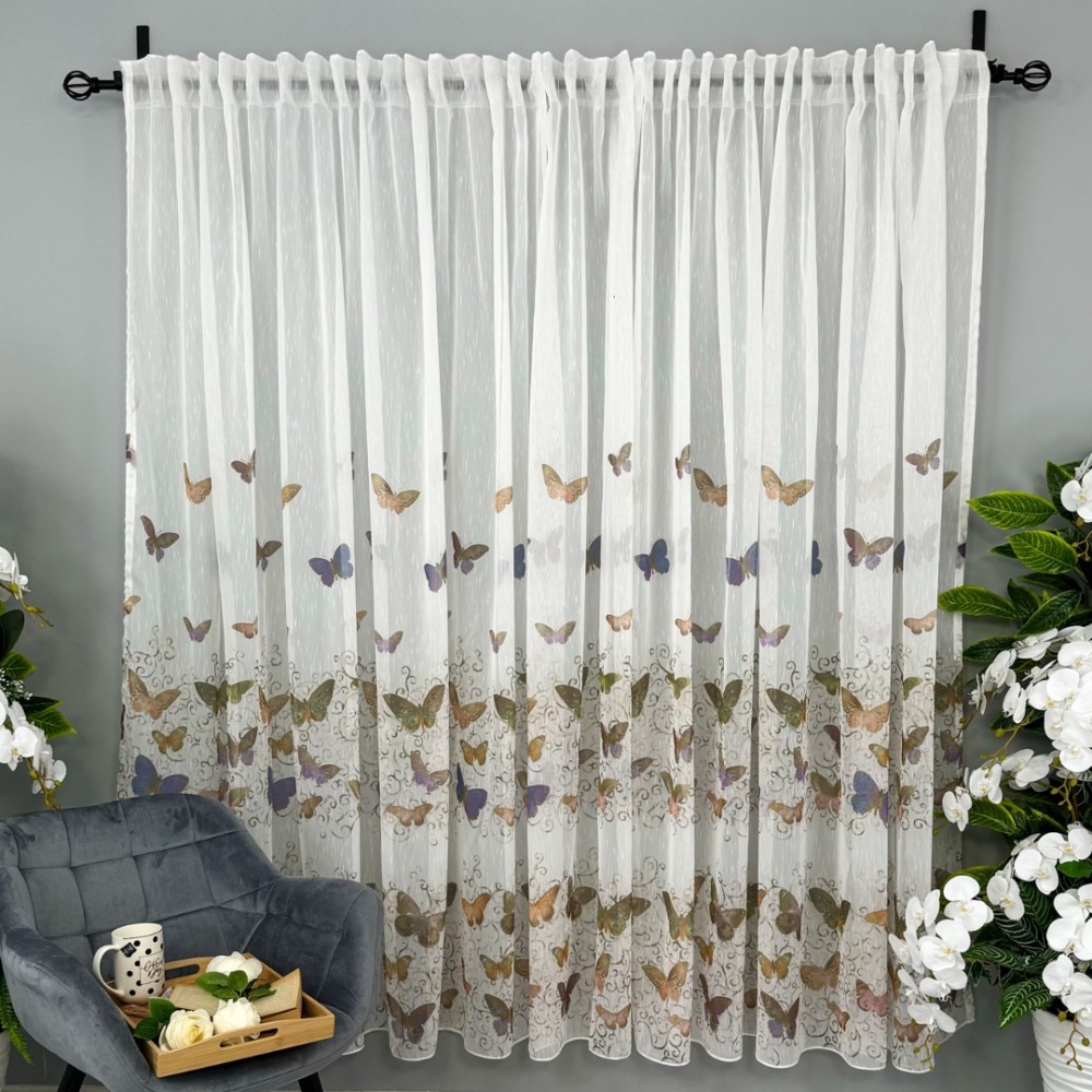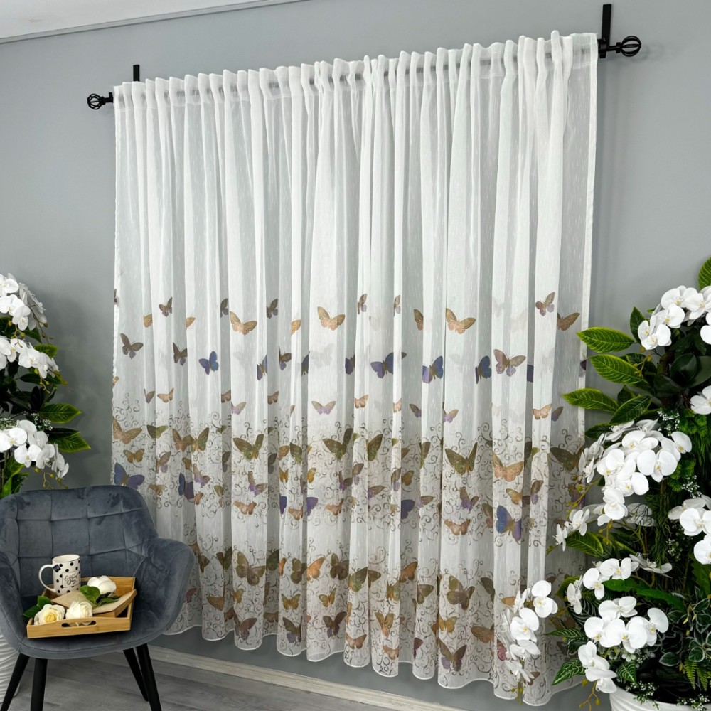 Perdea pentru Bucatarie din IN imprimat - 500cm x 220cm , Rejansa pt. bara , Alb cu fluturi, CumparaMisim, cod produs: CSR-PDs67A