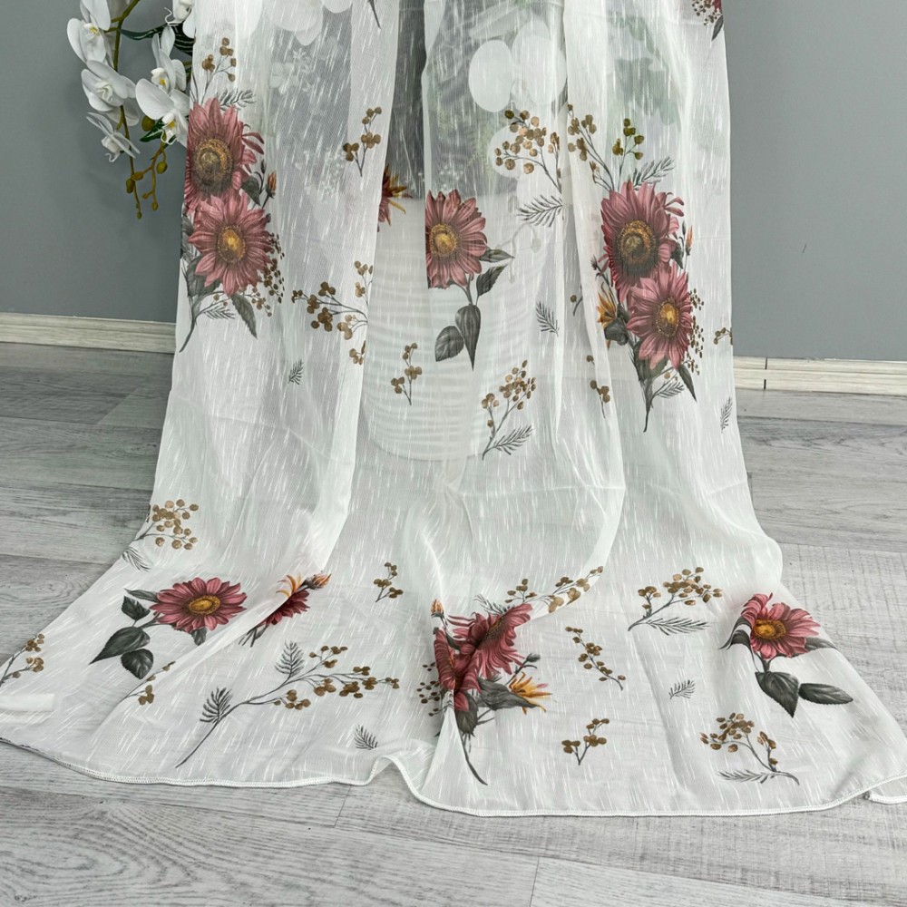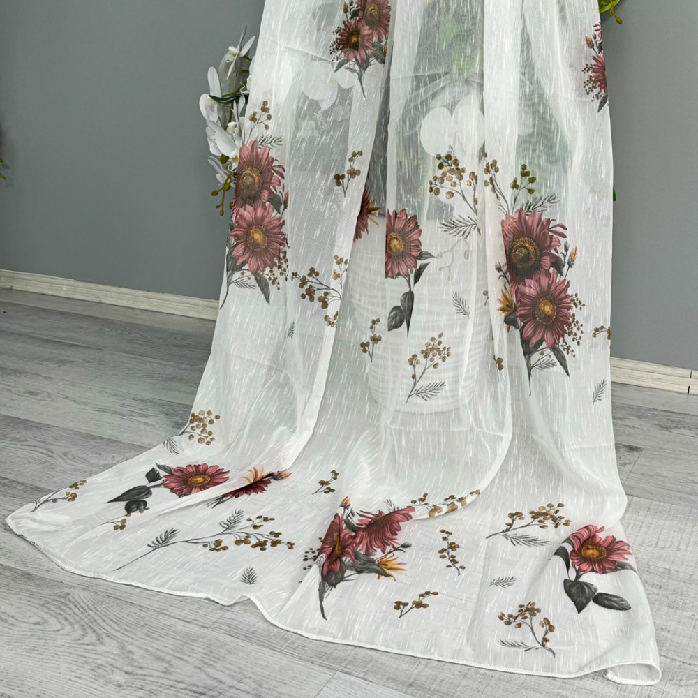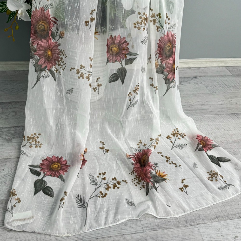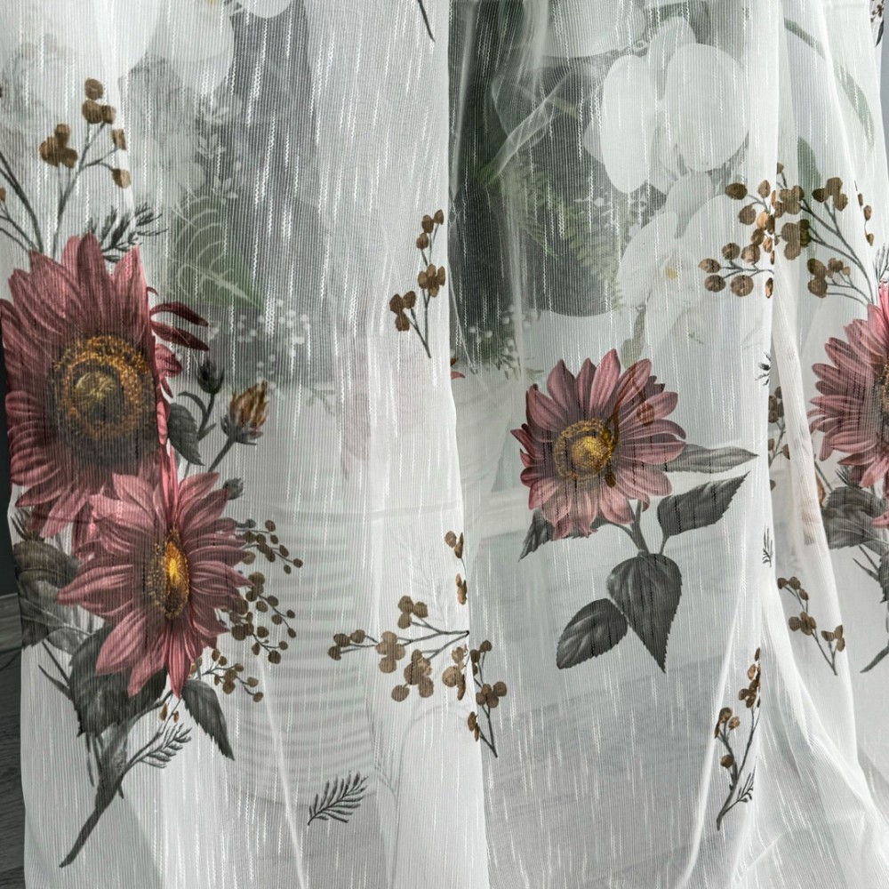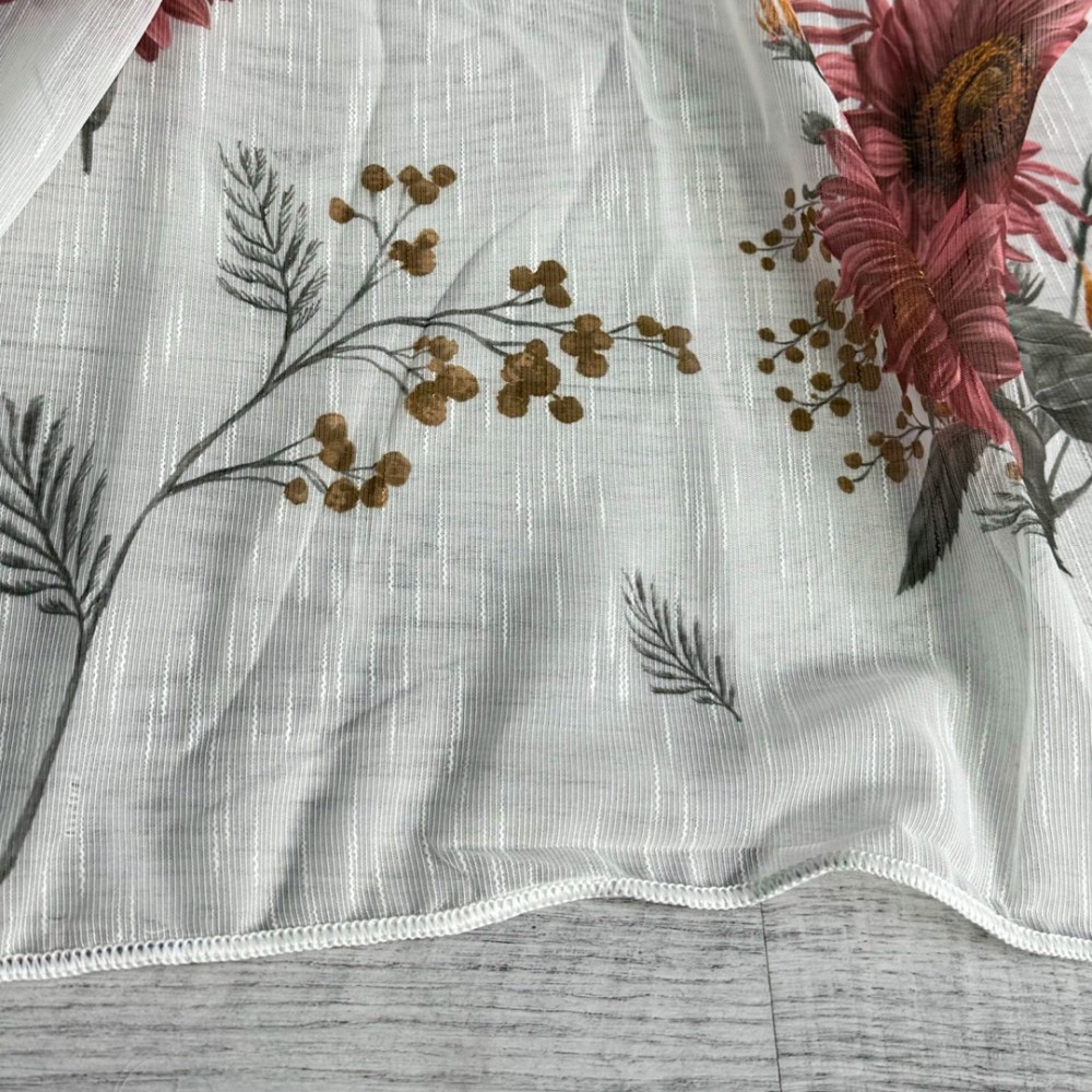 Perdea pentru Bucatarie din IN imprimat , Alb cu flori de toamna- latime 300x180m , Tiv lat , CumparaMisim, cod produs: CSR-PDs63A