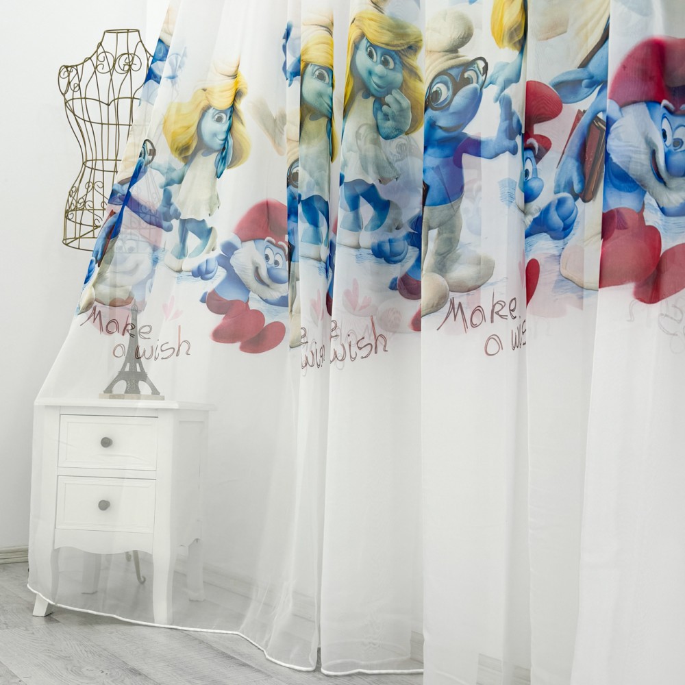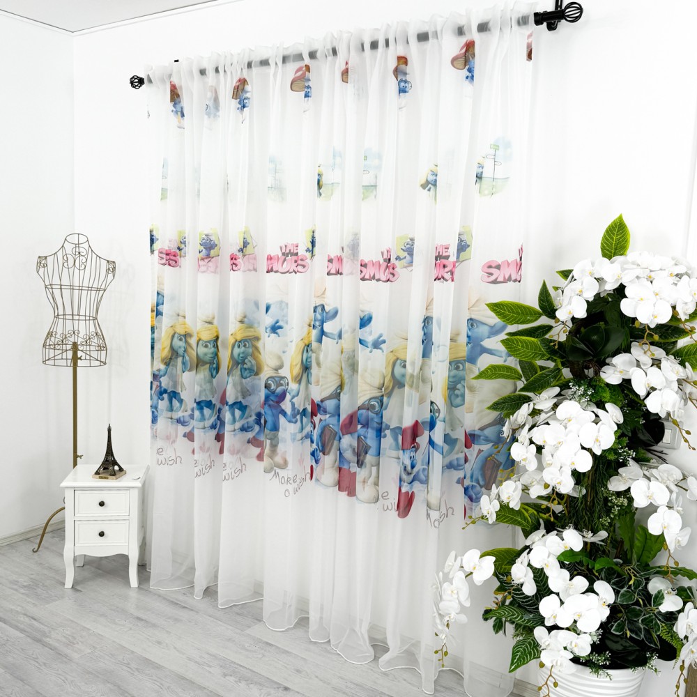 Perdea pentru copii din matase, Smurfs, 500cm x 232cm , Rejansa pentru bara, CumparaMisim, cod produs: CSR-PDs3a