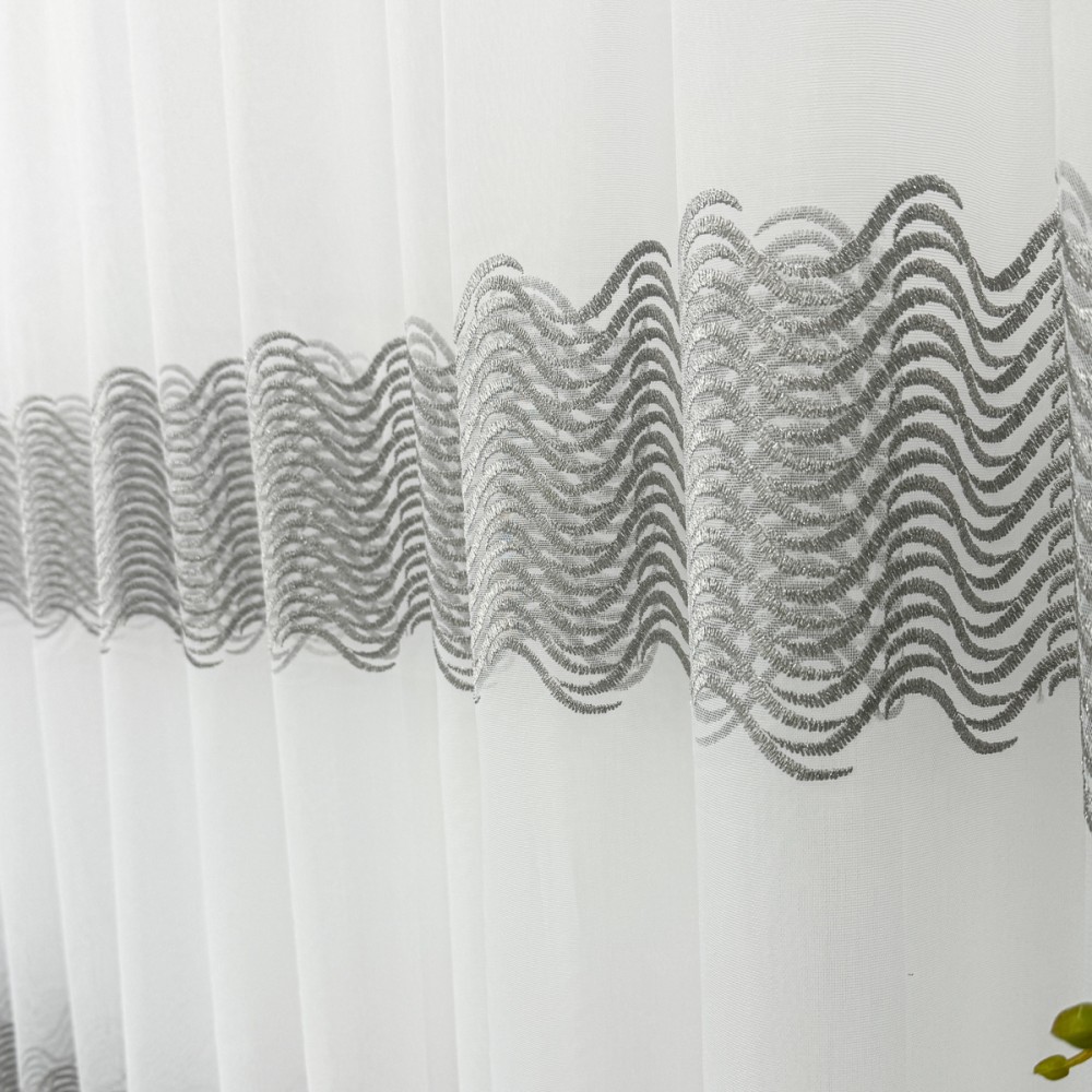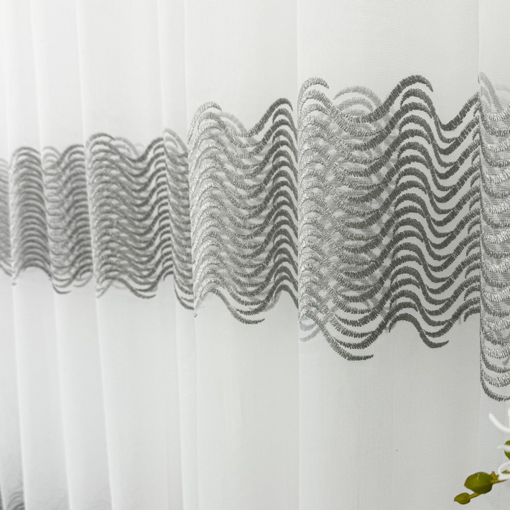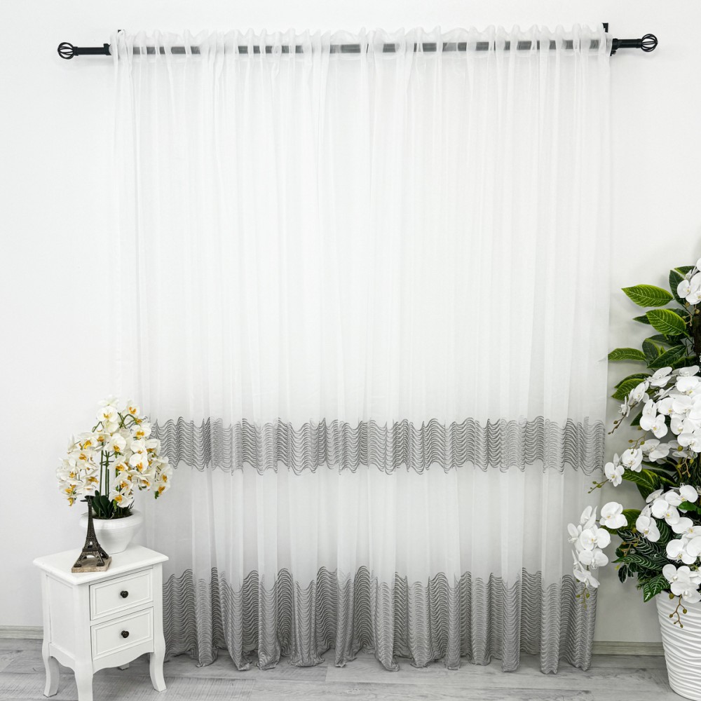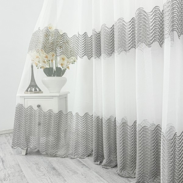 Perdea Waves din Tulle cu Broderie, Alb - Gr, latime 500cm, inaltime 232cm, cu rejansa pt bara, CumparaMisim, cod produs: BPDs78d