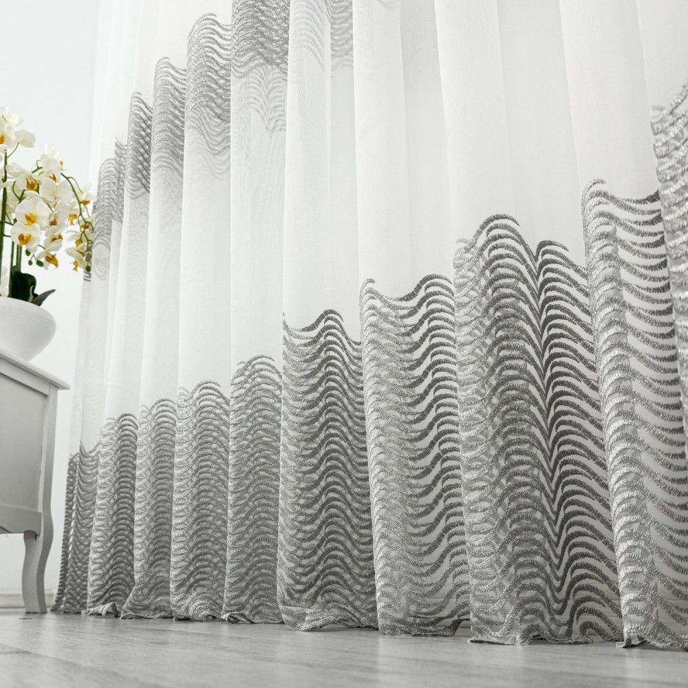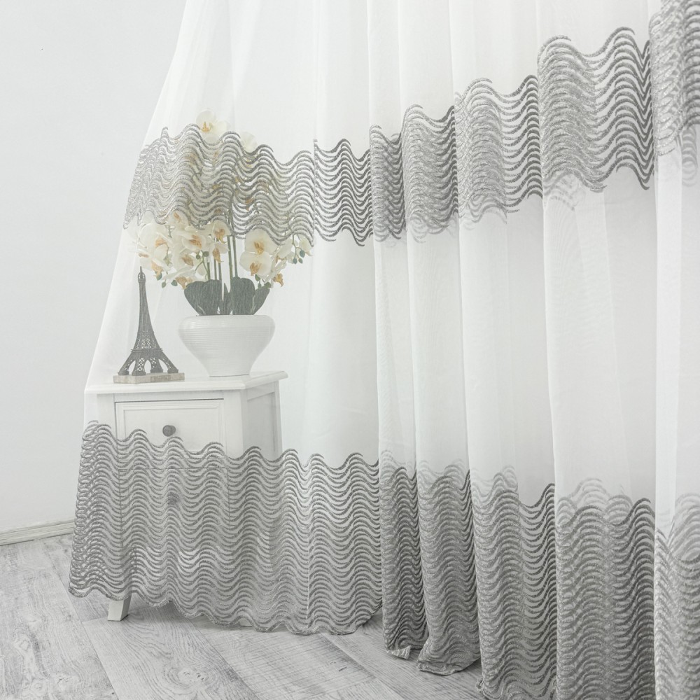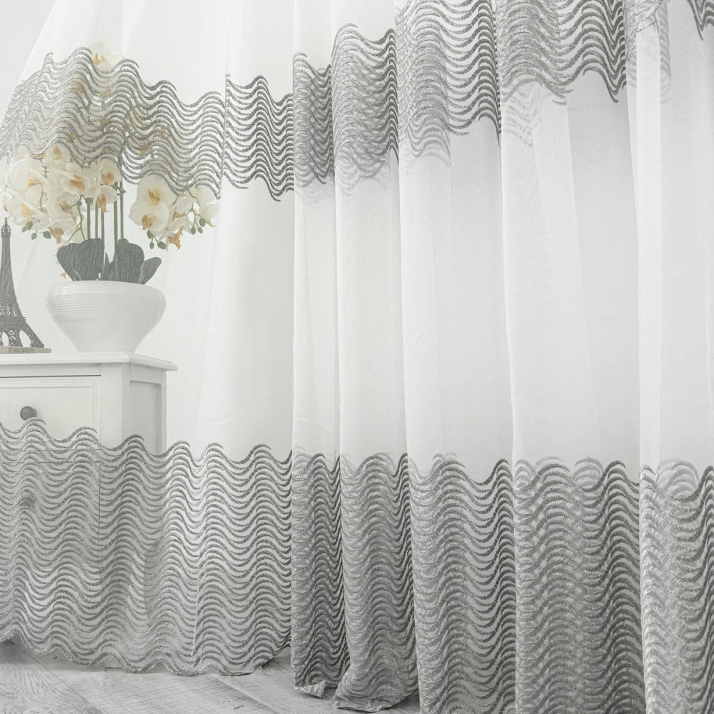Perdea Waves din Tulle cu Broderie, Alb - Gr, latime 500cm, inaltime 232cm, cu rejansa pt bara, CumparaMisim, cod produs: BPDs78d