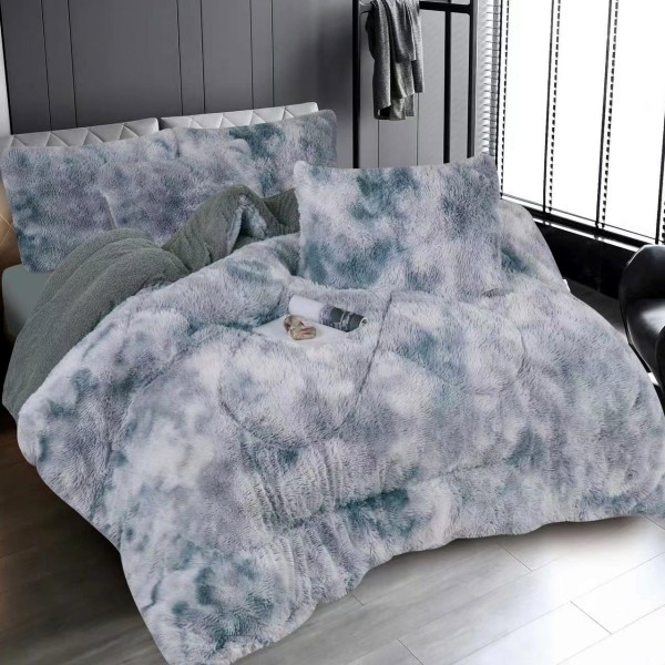 Pilota CoCoLiNo Fluffy + 2 fete de perna, matlasata, 200x230cm, Gri deschis-Alb, cod produs: PFK24