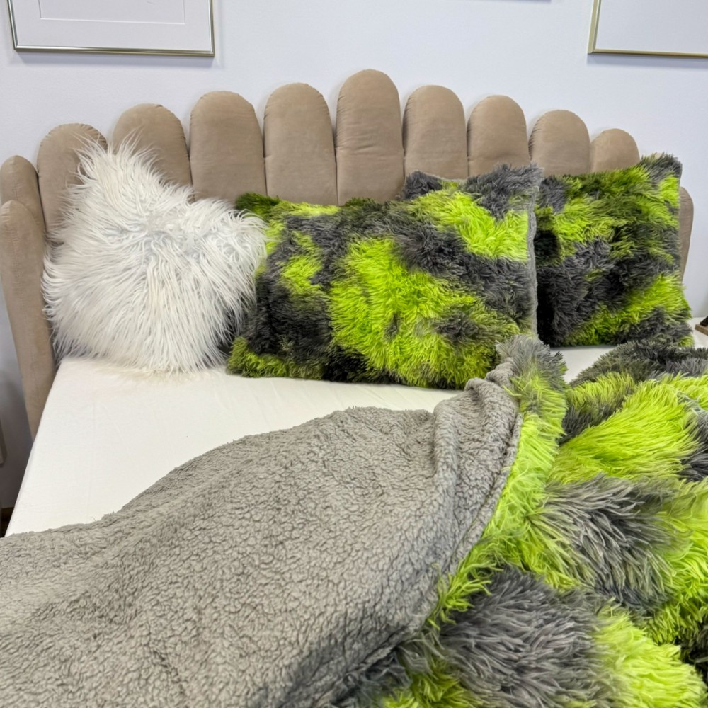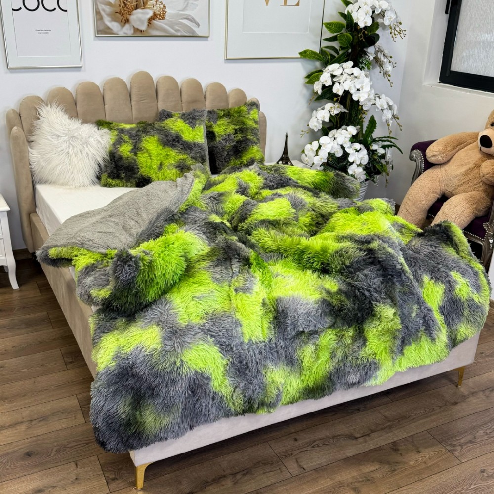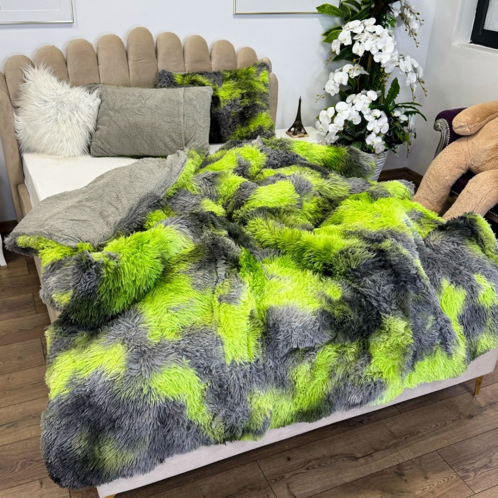 Pilota CoCoLiNo Fluffy + 2 fete de perna, matlasata, 200x230cm, Verde-Gri, cod produs: PFK28