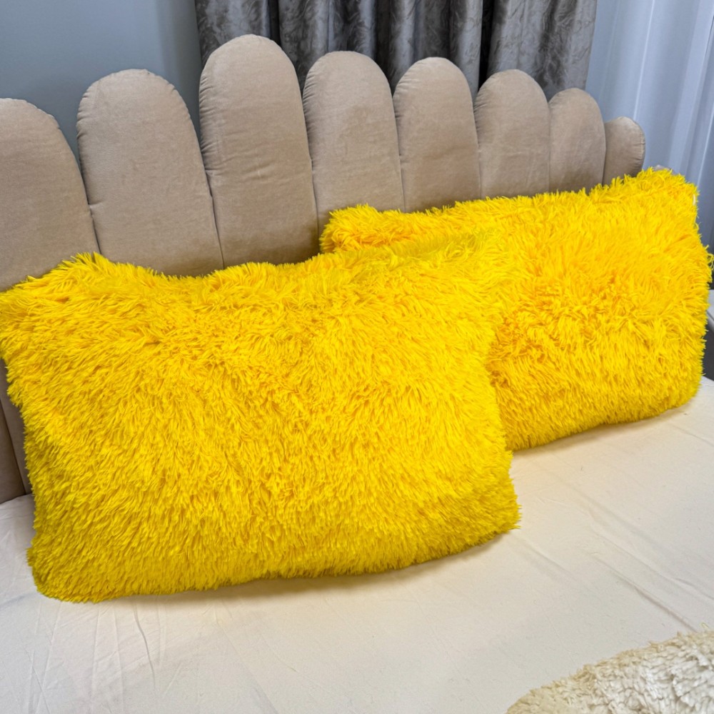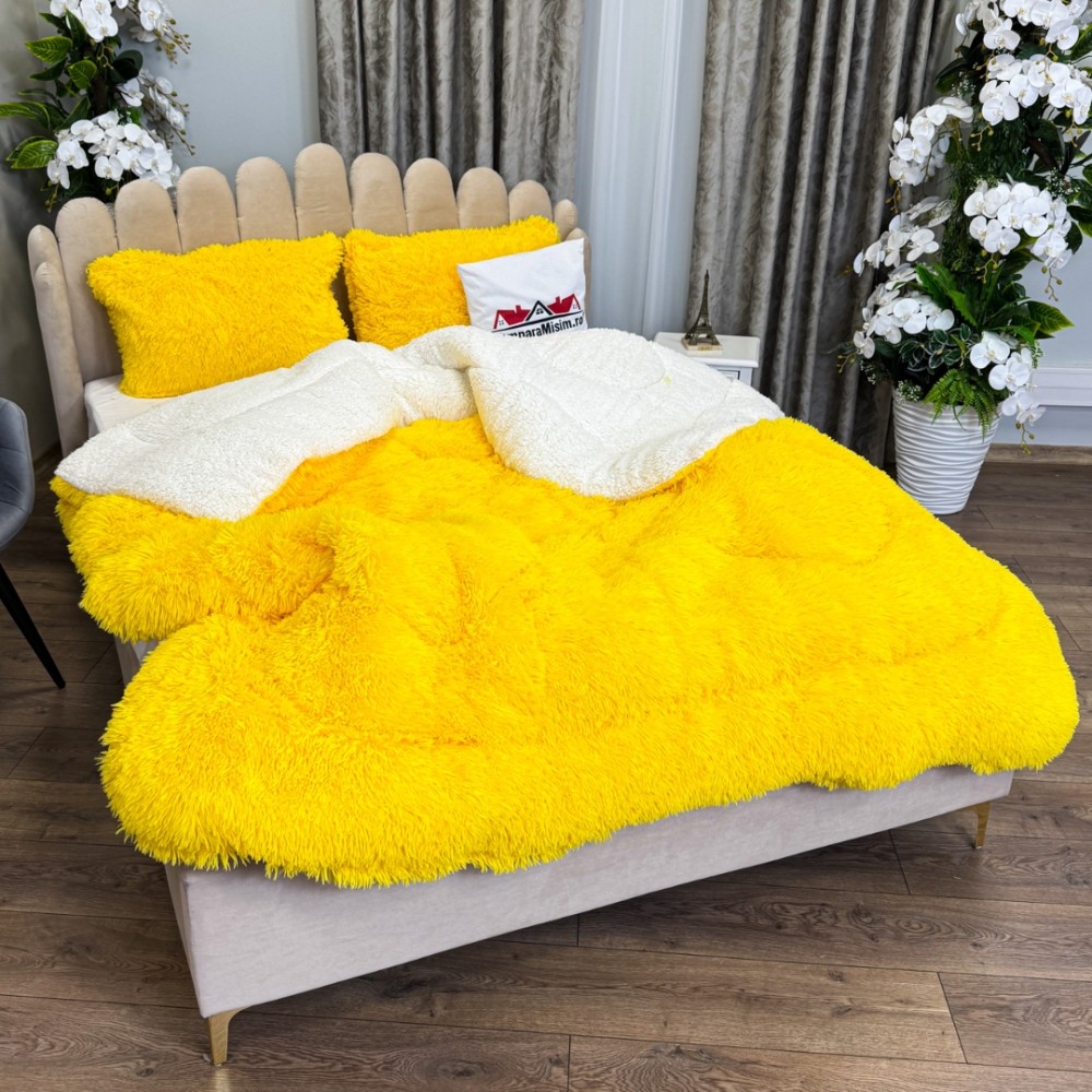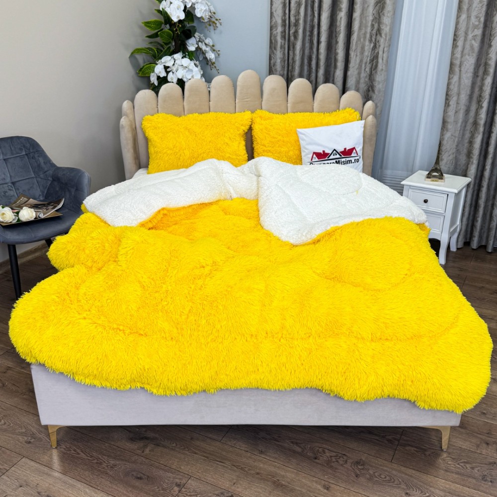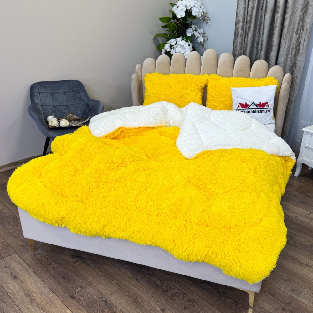 Pilota CoCoLiNo Fluffy, cu Blanita tip Sherpa, Alba, 200x230cm + 2 fete de perna 50x70cm, matlasata, Galben, cod produs: CSA-PFL10