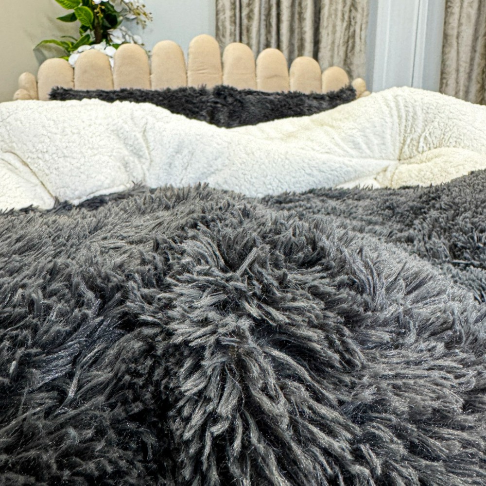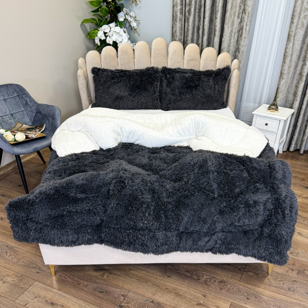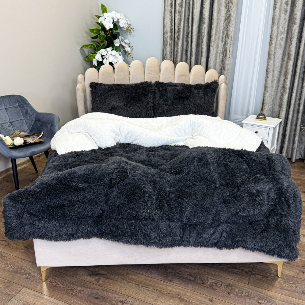 Pilota CoCoLiNo Fluffy, cu Blanita tip Sherpa, Alba, 200x230cm + 2 fete de perna 50x70cm, matlasata, Gri antracit , cod produs: CSA-PFL13