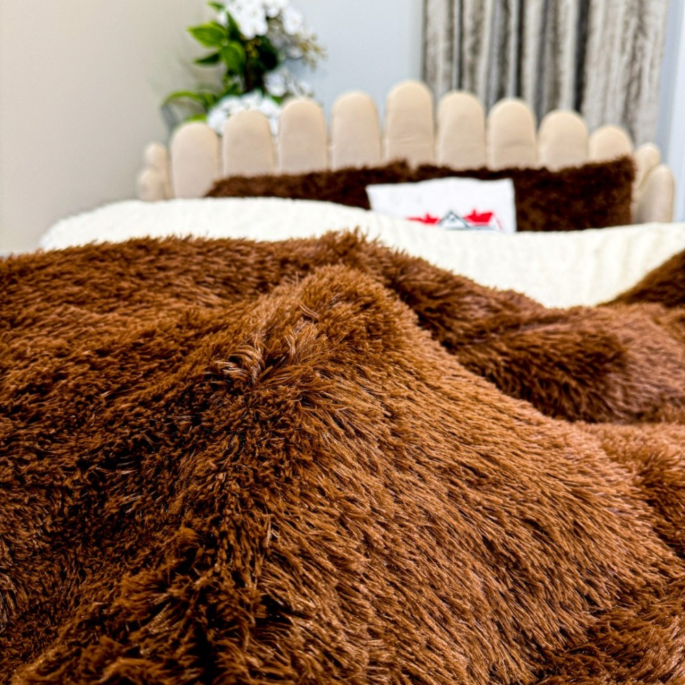 Pilota CoCoLiNo Fluffy, cu Blanita tip Sherpa, Alba, 200x230cm + 2 fete de perna 50x70cm, matlasata, Maro , degrade, cod produs: CSA-PFL14