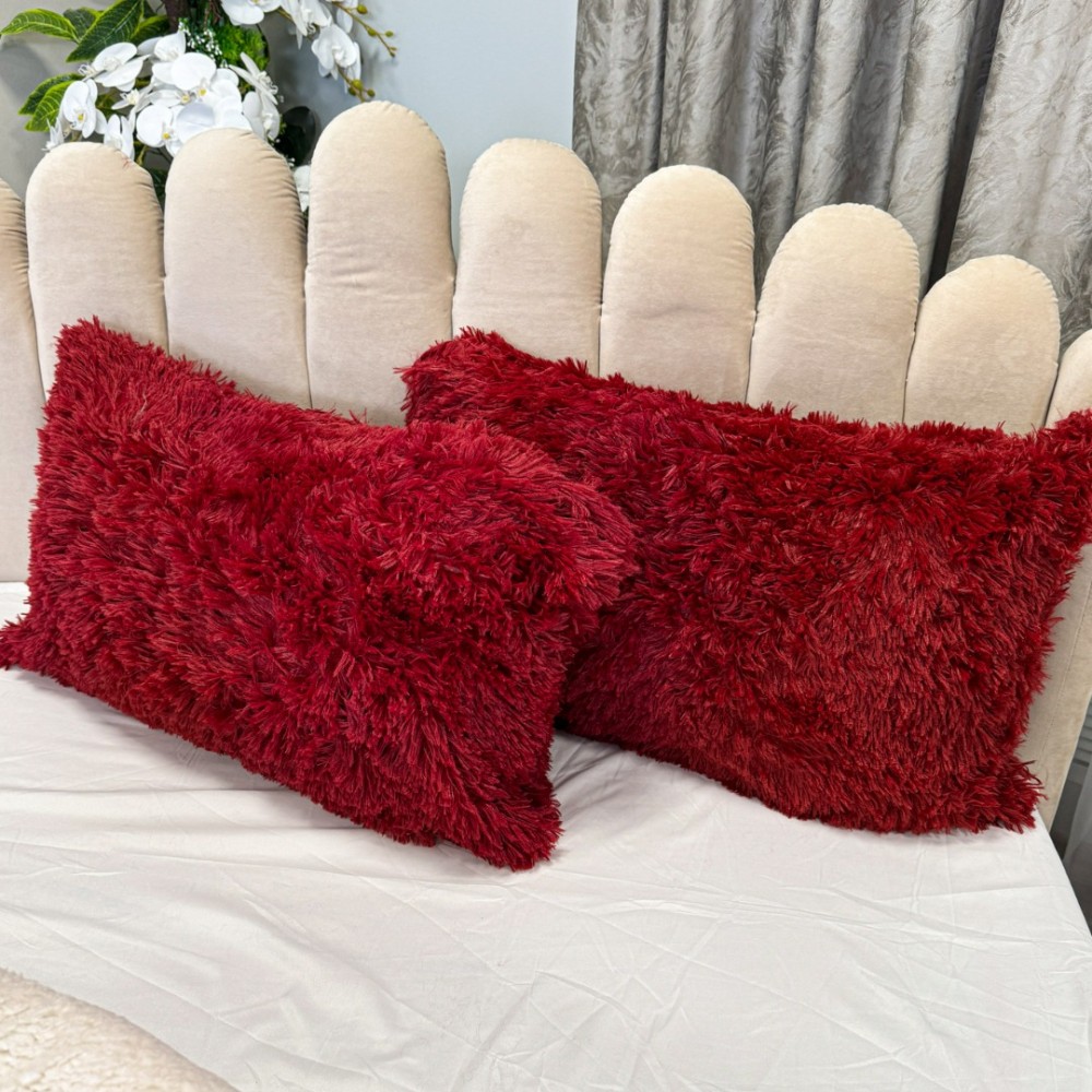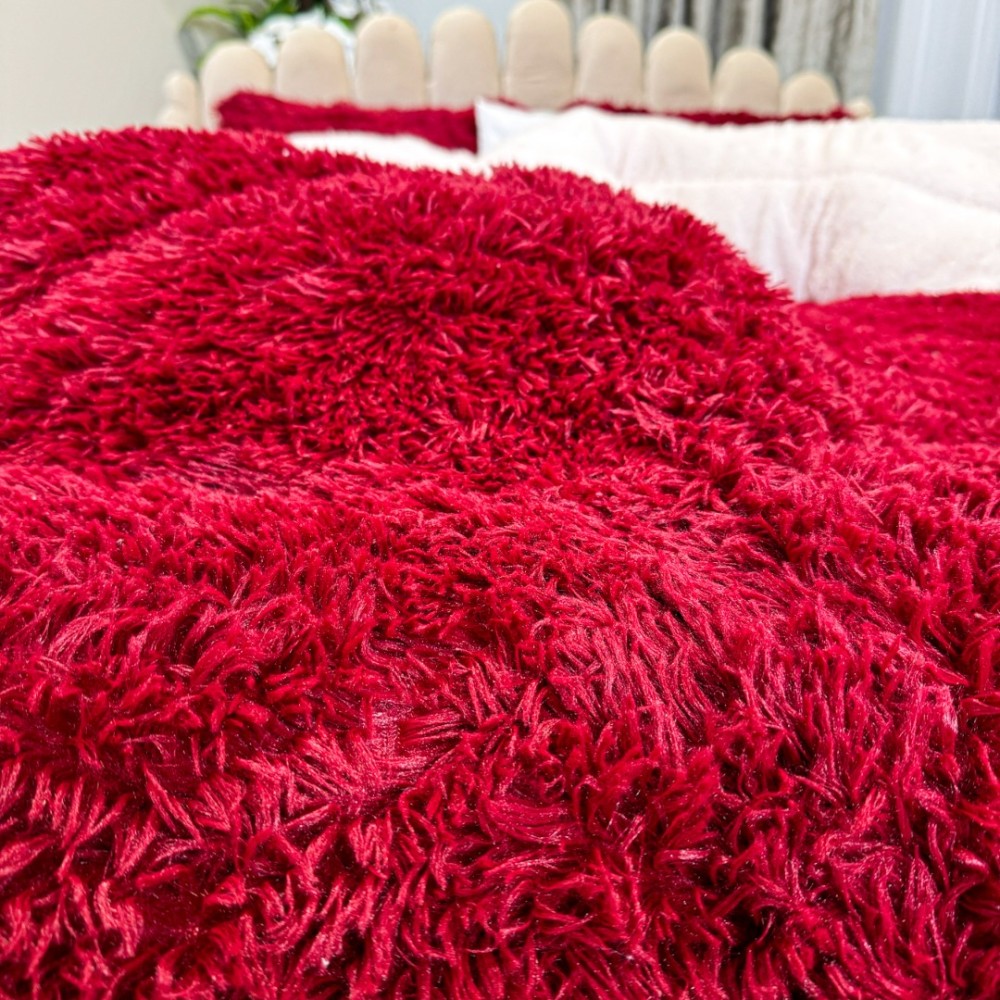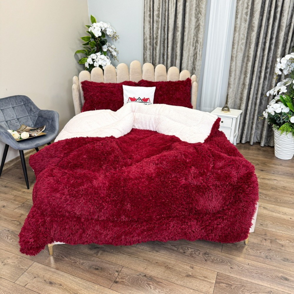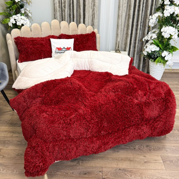 Pilota CoCoLiNo Fluffy, cu Blanita tip Sherpa, Alba, 200x230cm + 2 fete de perna 50x70cm, matlasata, Visiniu, cod produs: CSA-PFL16