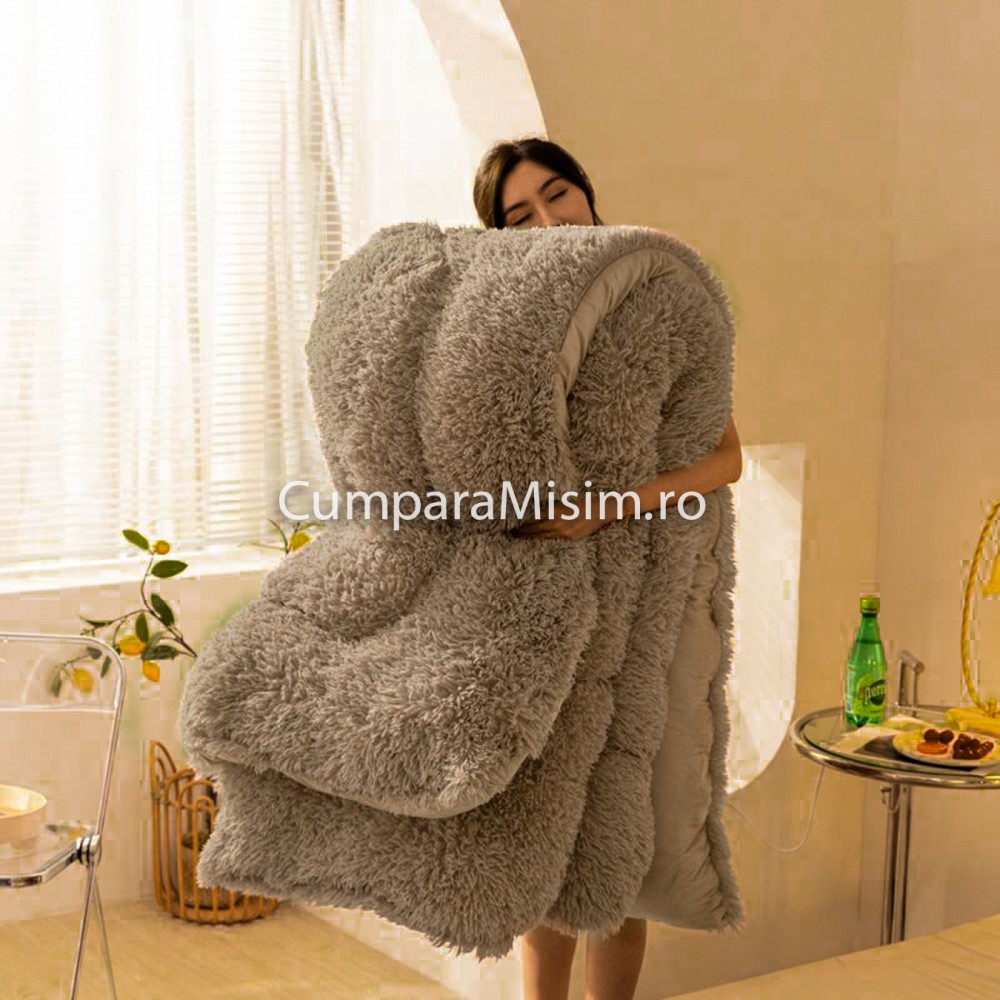 Pilota are 2 fete, este de dimensiuni mari. Fata principala este fluffy, iar partea secundara este din cocolino normal.