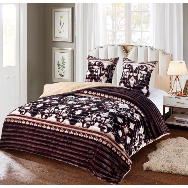 Pilota CoCoLiNo Frizzy cu blanita, matlasata, 200x230cm, cu fete de perna 60x60cm, Crem, Maro, model floral, cod produs: YOP212