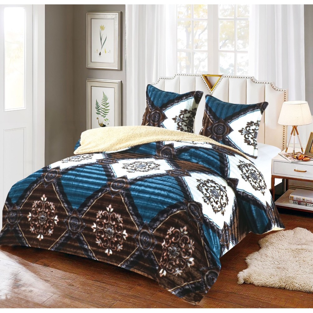 Pilota CoCoLiNo Frizzy cu blanita, matlasata, 200x230cm, cu fete de perna 60x60cm, Turquoise, Maro, model elegant, cod produs: YOP214