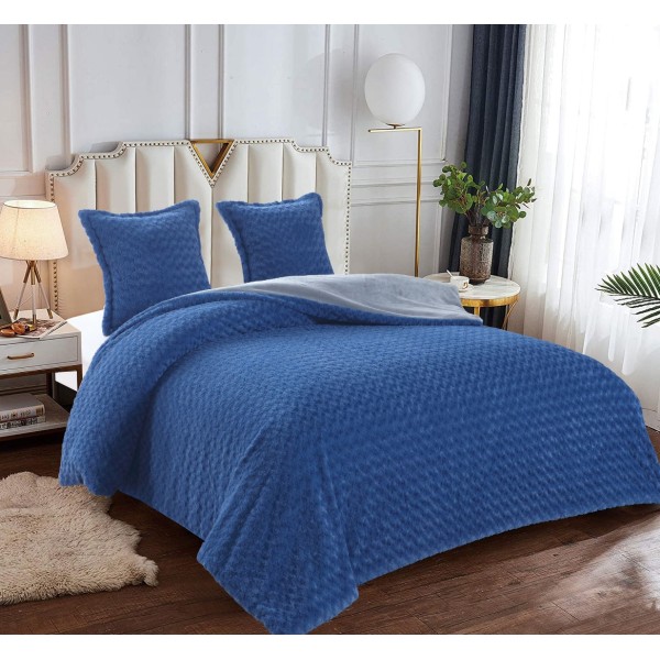 Pilota CoCoLiNo Roses cu blanita, matlasata, 200x230cm, cu fete de perna 60x60cm, Albastru, cod produs: YOP308