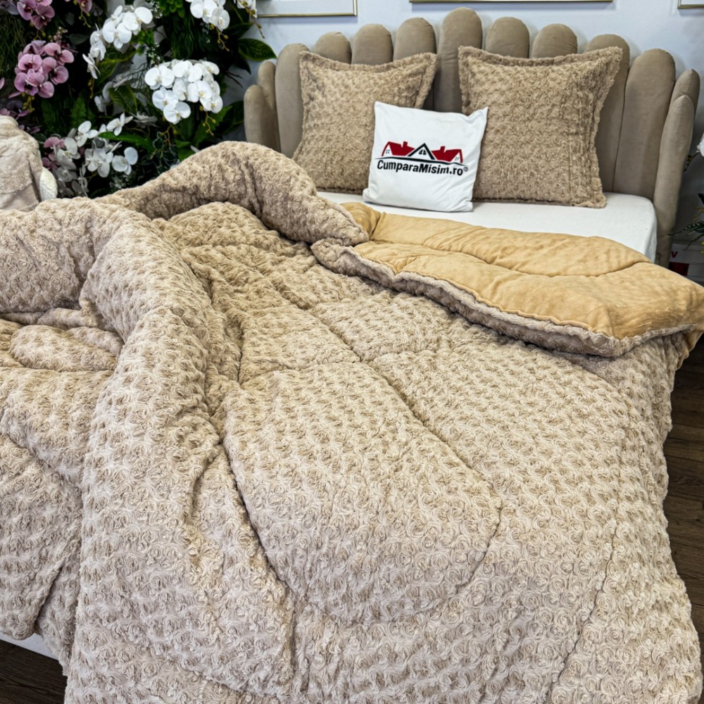 - Dos cu blăniță moale: Pe partea inferioară, Pilota Roses are un strat suplimentar de blăniță, creat special pentru a oferi o senzație de „îmbrățișare” atunci când te învelești. Blănița adaugă un strat de confort suplimentar și o notă luxoasă, fiind perfectă pentru cei care adoră senzația de căldură și moliciune.
