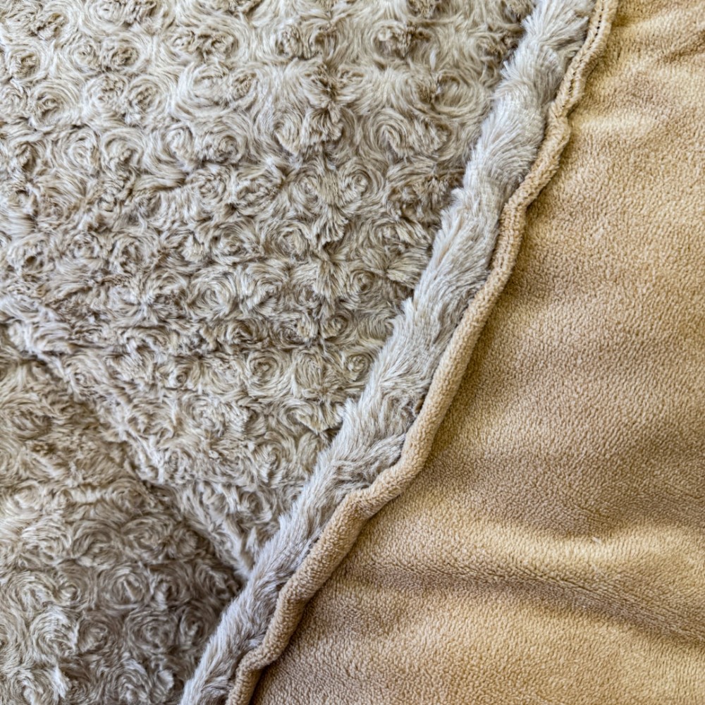 - Textura de lux (Cocolino Roses): Fața pilotei este realizată din materialul premium Cocolino, într-o variantă Roses ce imită perfect blănița artificială scurtă, fiind moale și cu un luciu ușor satinat. La atingere, Pilota Roses oferă o senzație catifelată, de parcă te-ai cufunda într-o blană fină, dar etică și durabilă.