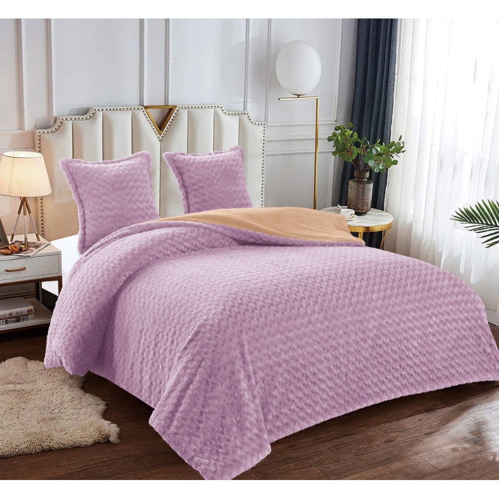 Pilota CoCoLiNo Roses cu blanita, matlasata, 200x230cm, cu fete de perna 60x60cm, Mov, cod produs: YOP305
