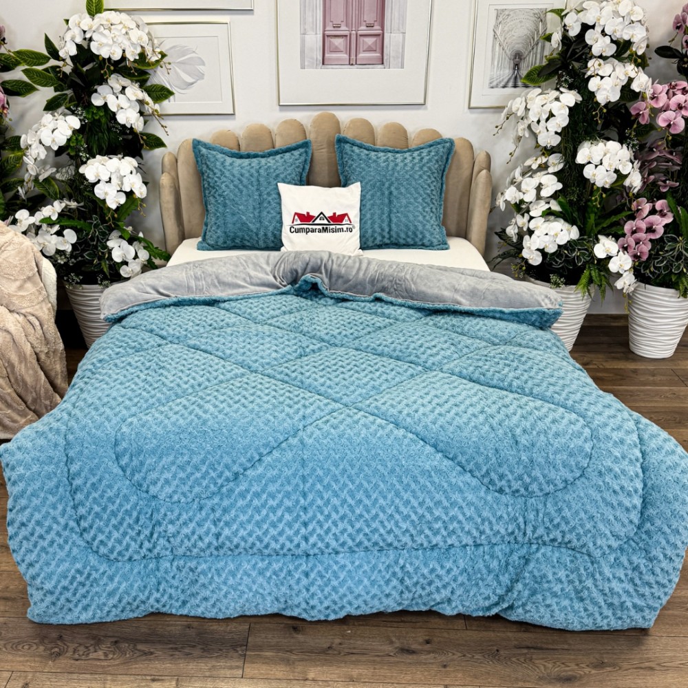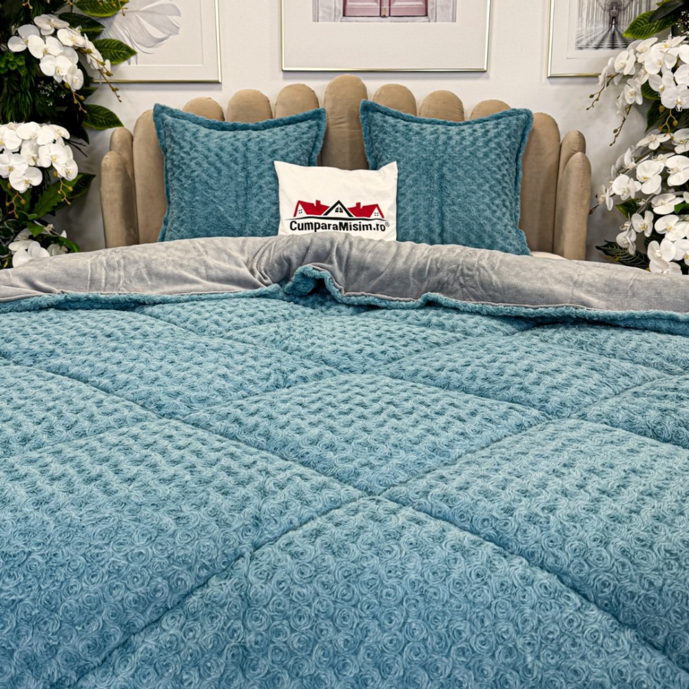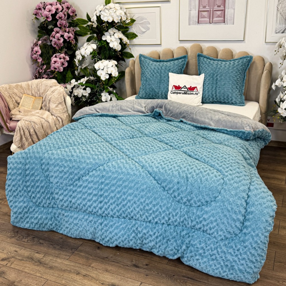 - Dos cu blăniță moale: Pe partea inferioară, Pilota Roses are un strat suplimentar de blăniță, creat special pentru a oferi o senzație de „îmbrățișare” atunci când te învelești. Blănița adaugă un strat de confort suplimentar și o notă luxoasă, fiind perfectă pentru cei care adoră senzația de căldură și moliciune.