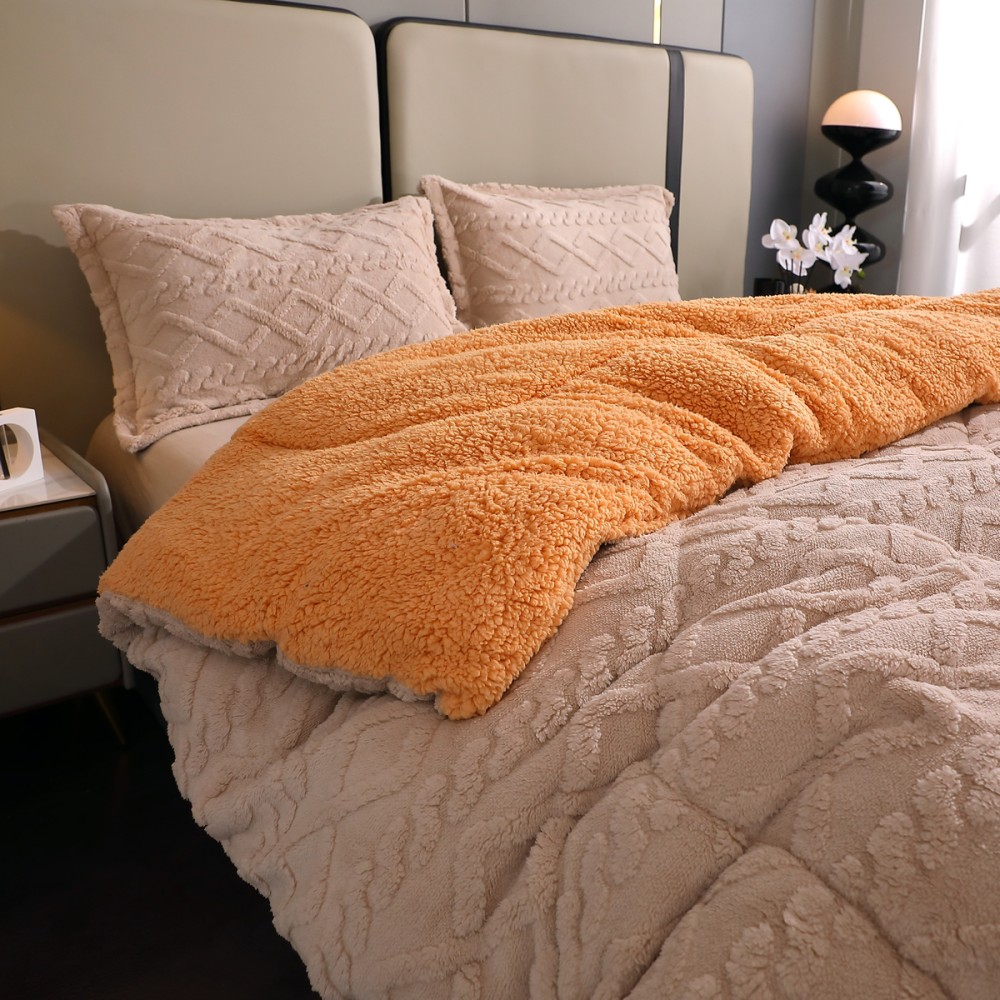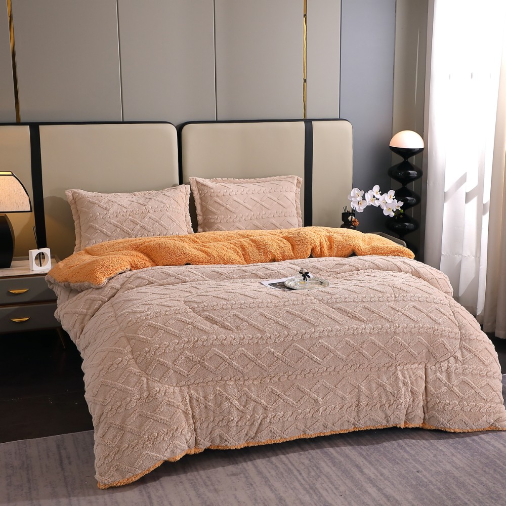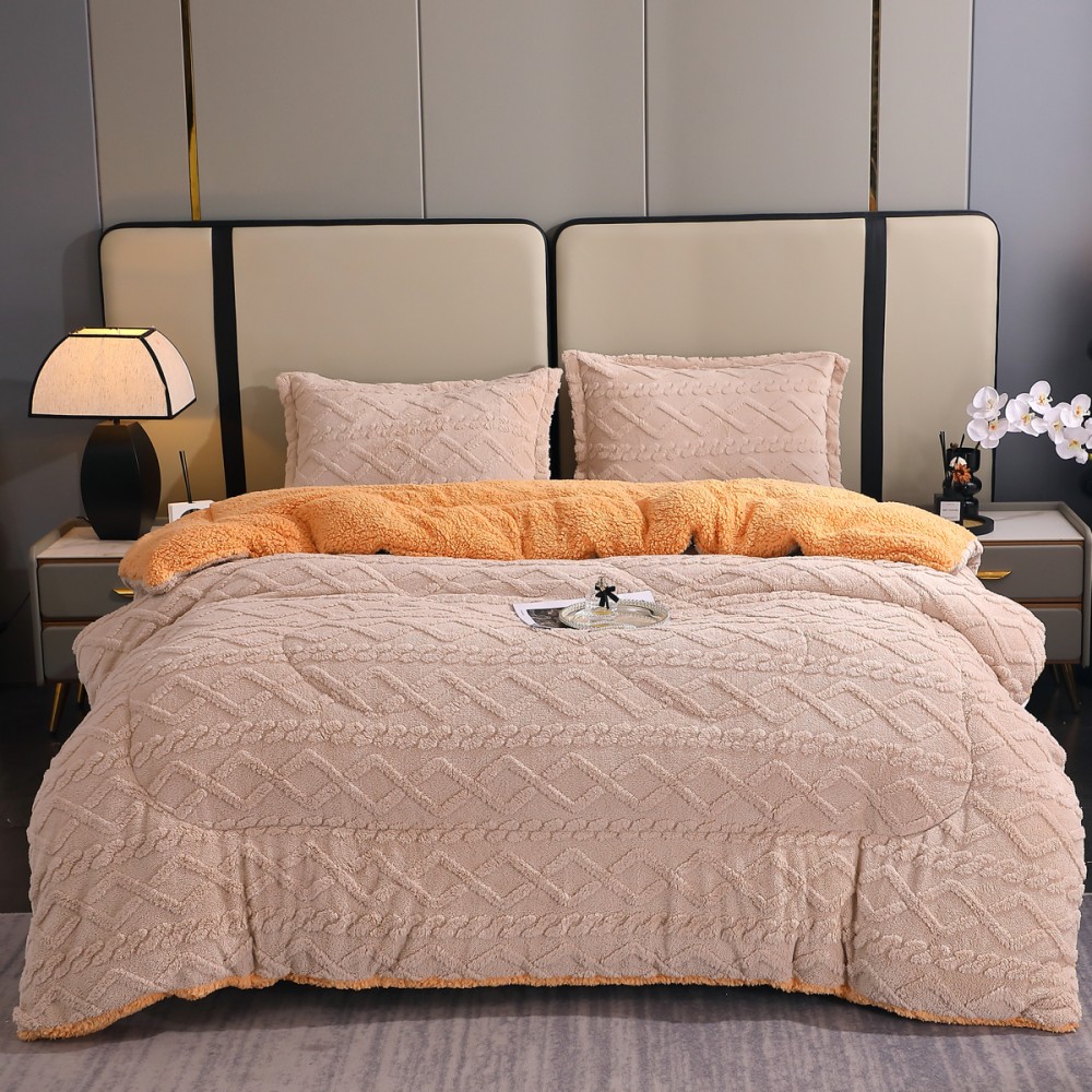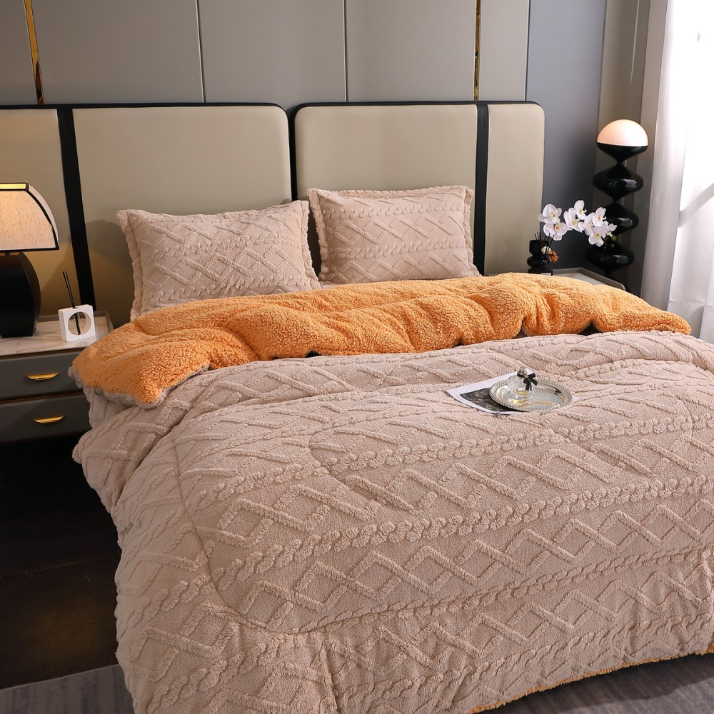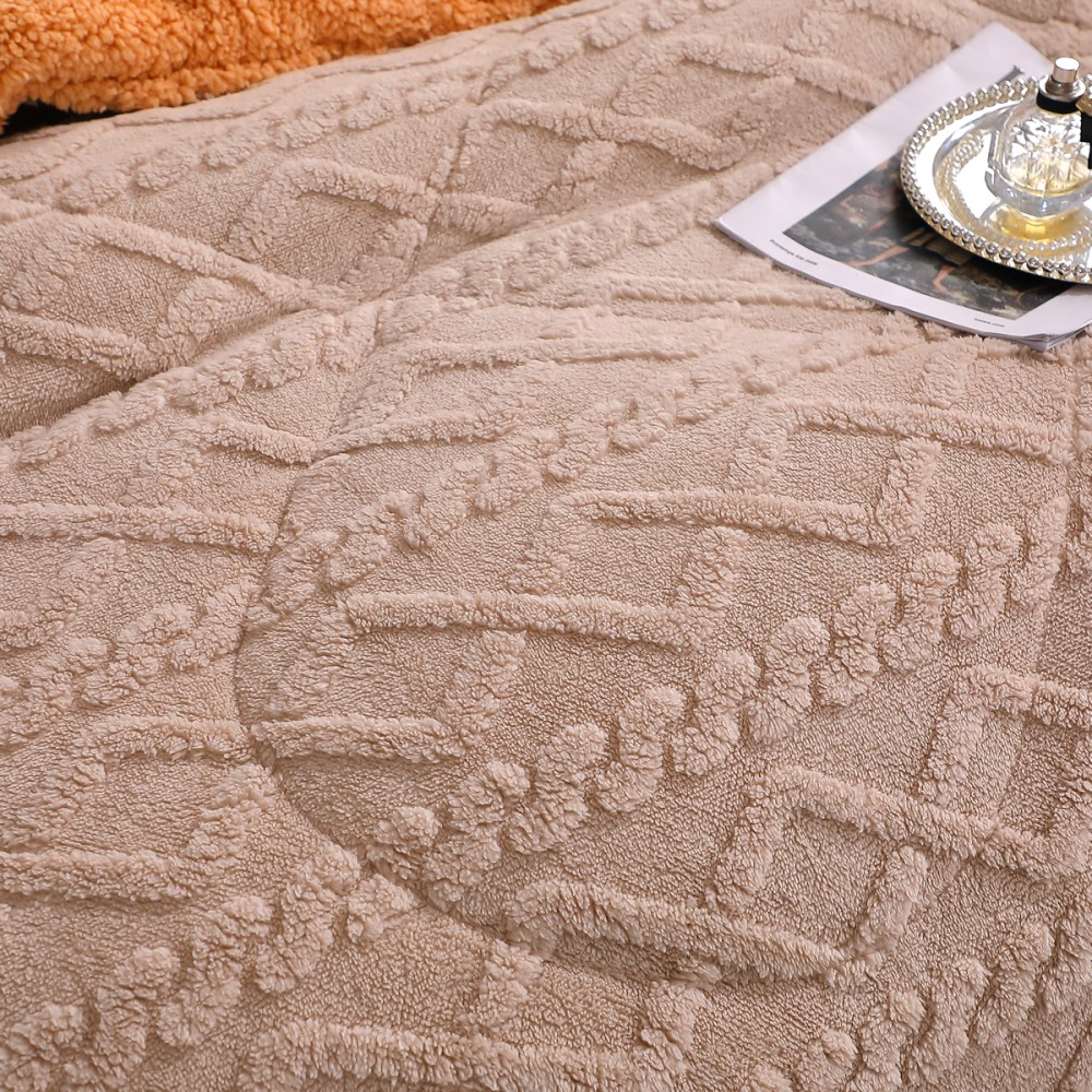 Pilota CoCoLiNo Sherpa tip Tricotaj cu blanita bej, matlasata, 200x230cm + 2 fete de perna 50x70cm, cappuccino, cod produs: BCC-QB103