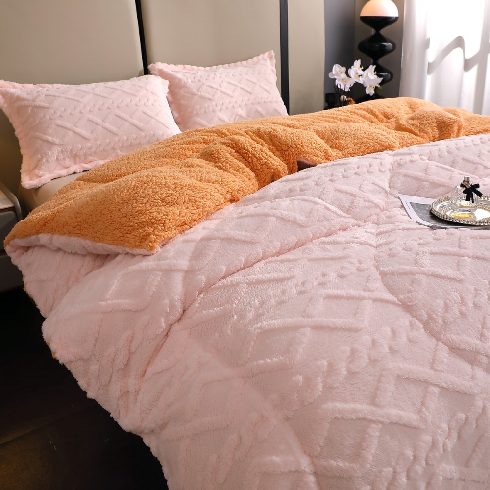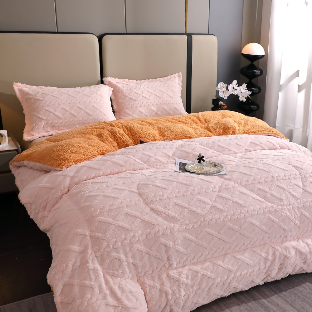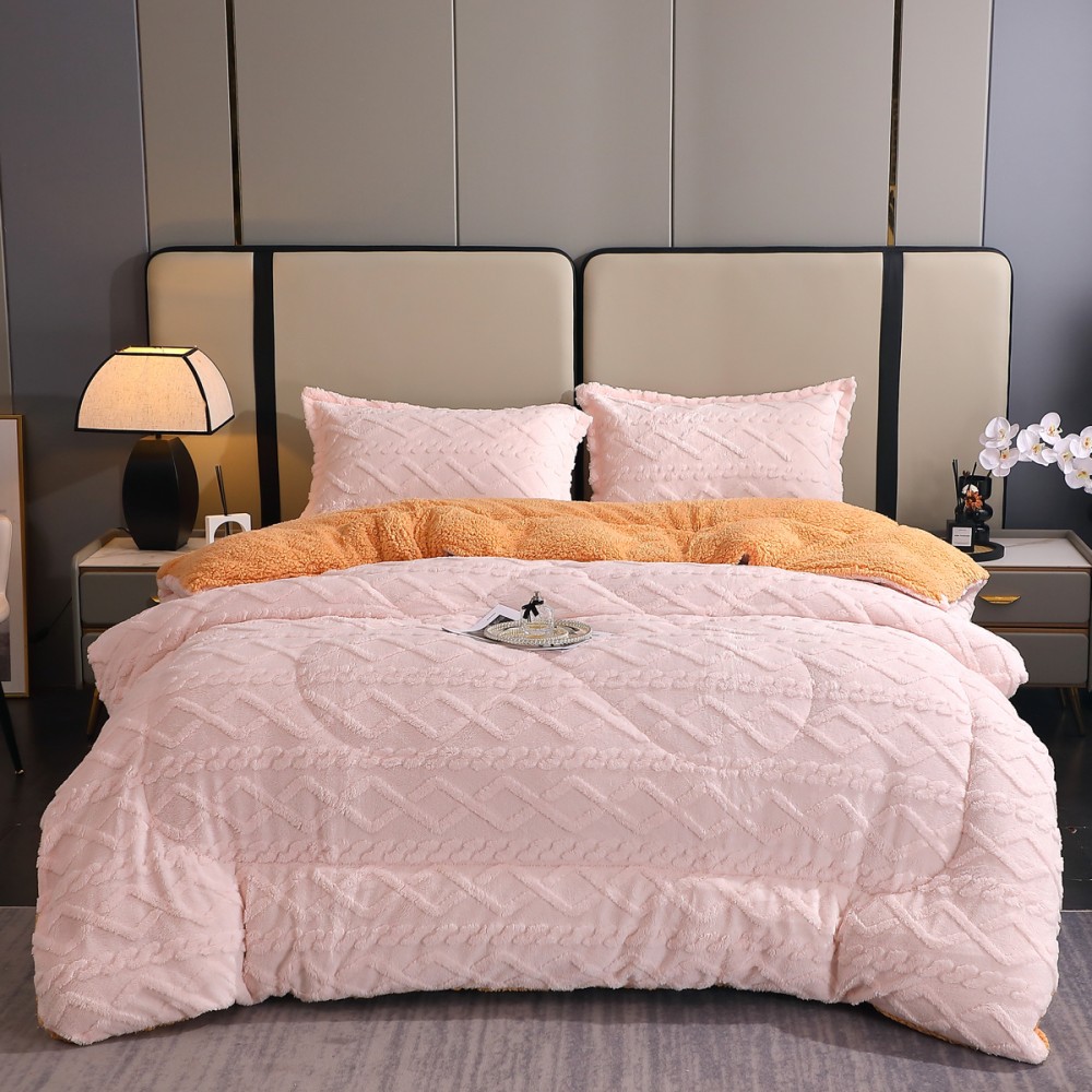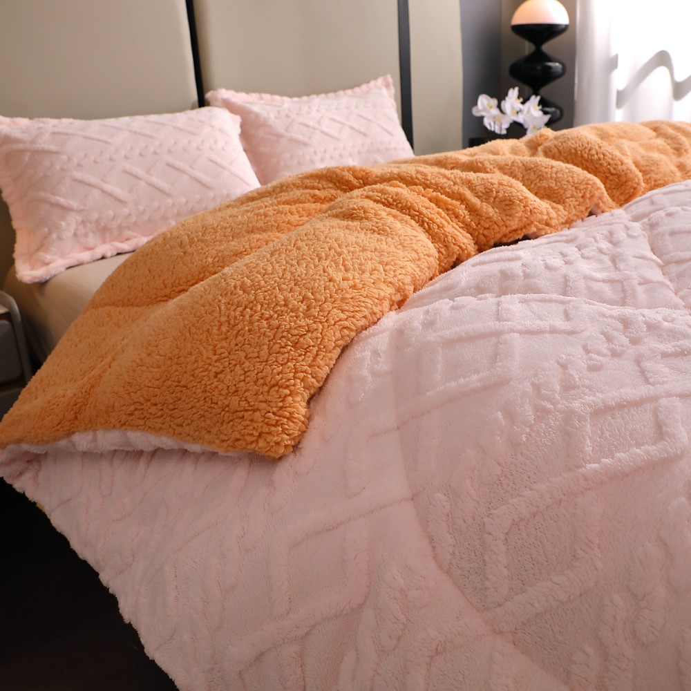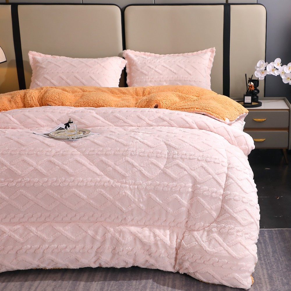 Pilota CoCoLiNo Sherpa tip Tricotaj cu blanita bej, matlasata, 200x230cm + 2 fete de perna 50x70cm, crem, cod produs: BCC-QB104