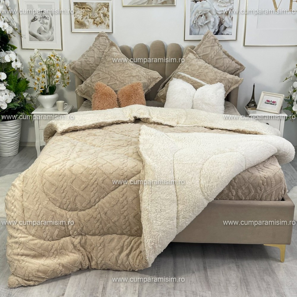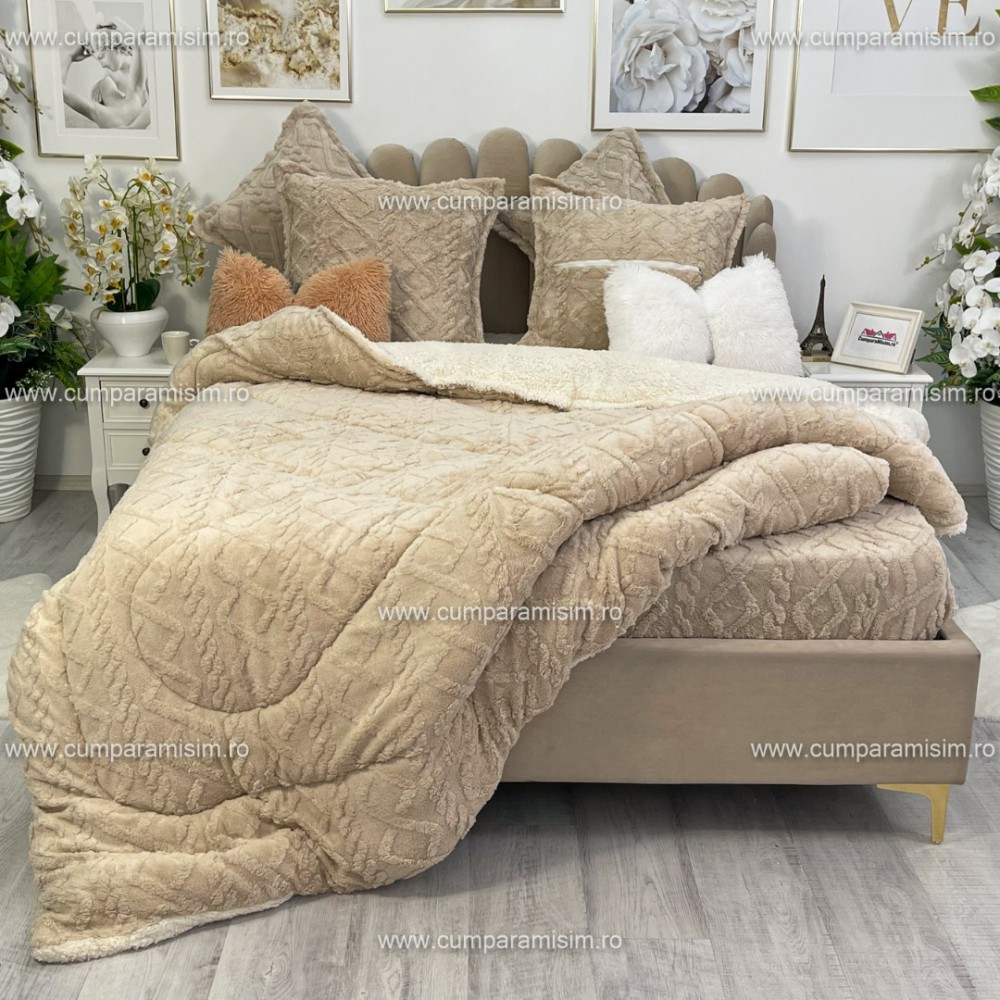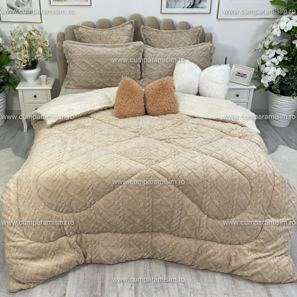 Pilota CoCoLiNo Sherpa tip Tricotaj cu blanita, matlasata, 200x230cm, bej deschis, cod produs: YOP103