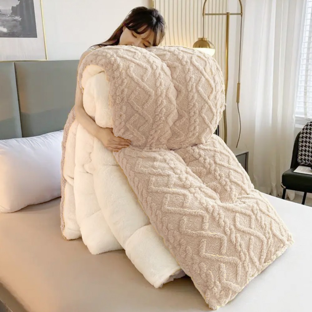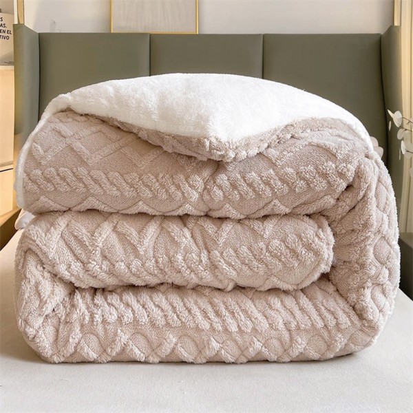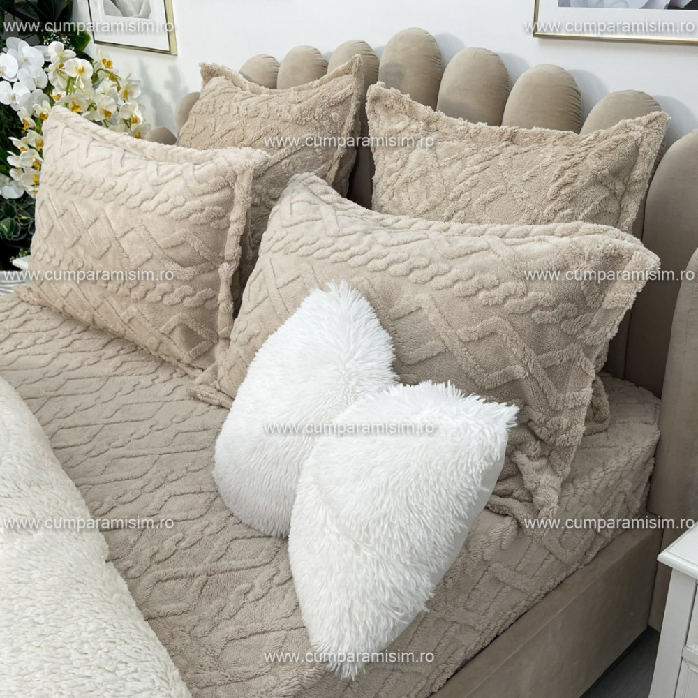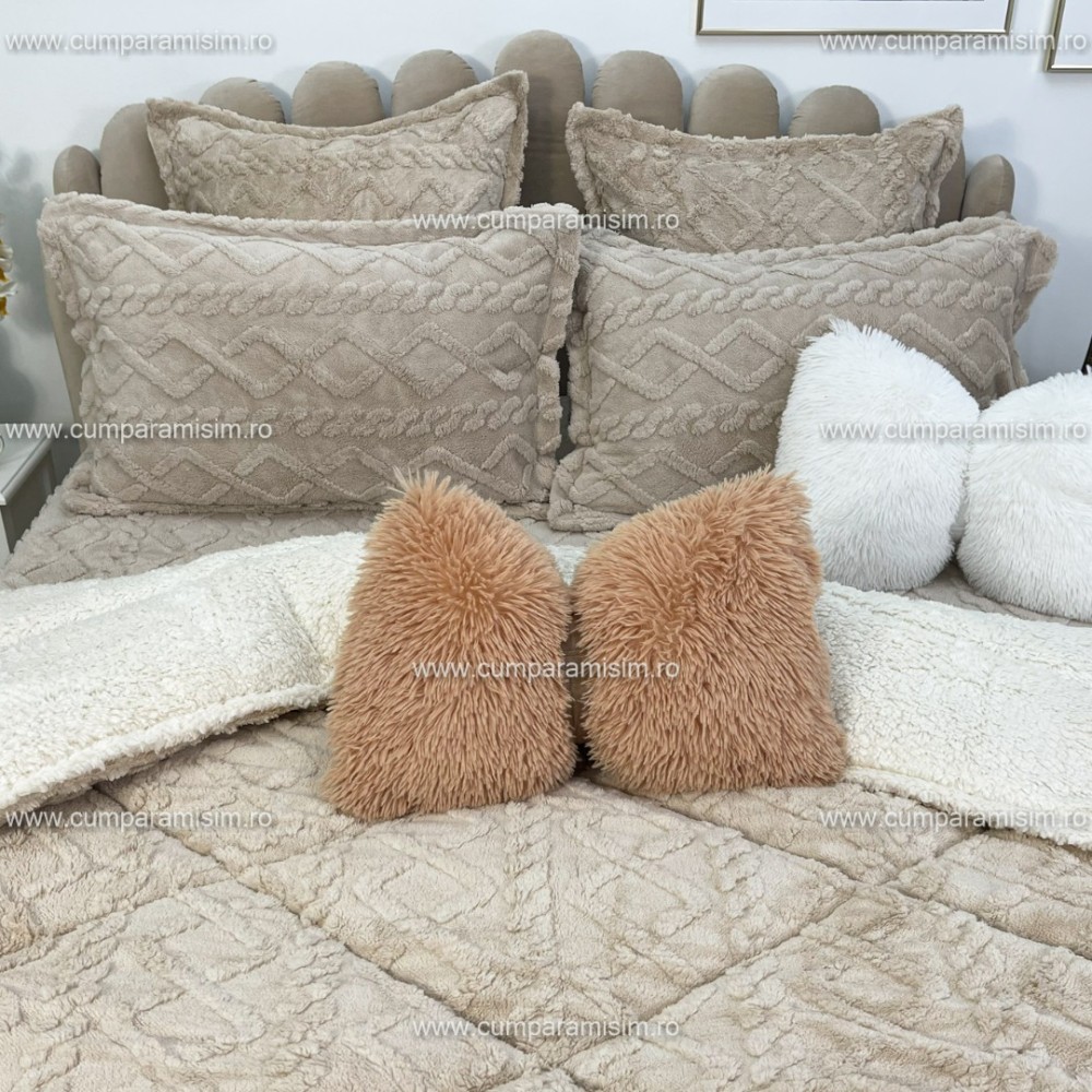 Pilota CoCoLiNo Sherpa tip Tricotaj cu blanita, matlasata, 200x230cm, bej deschis, cod produs: YOP103