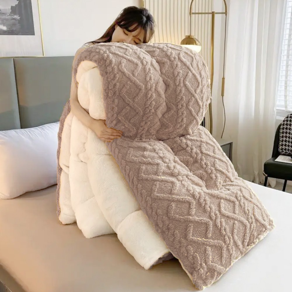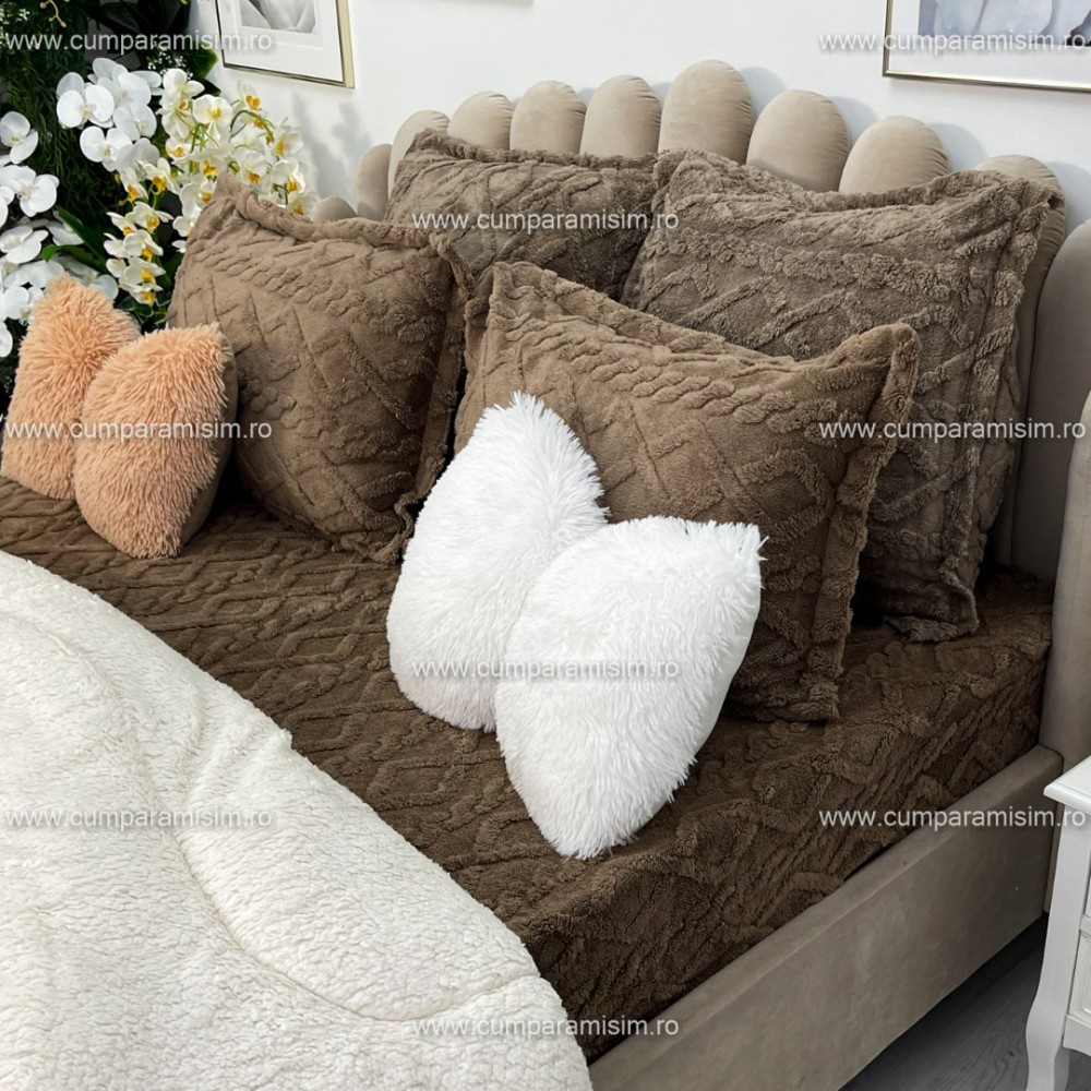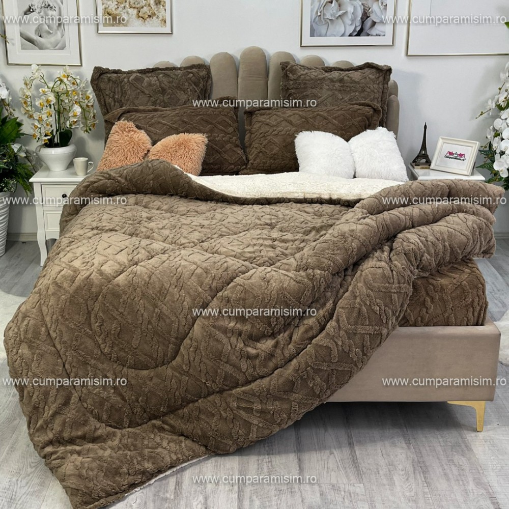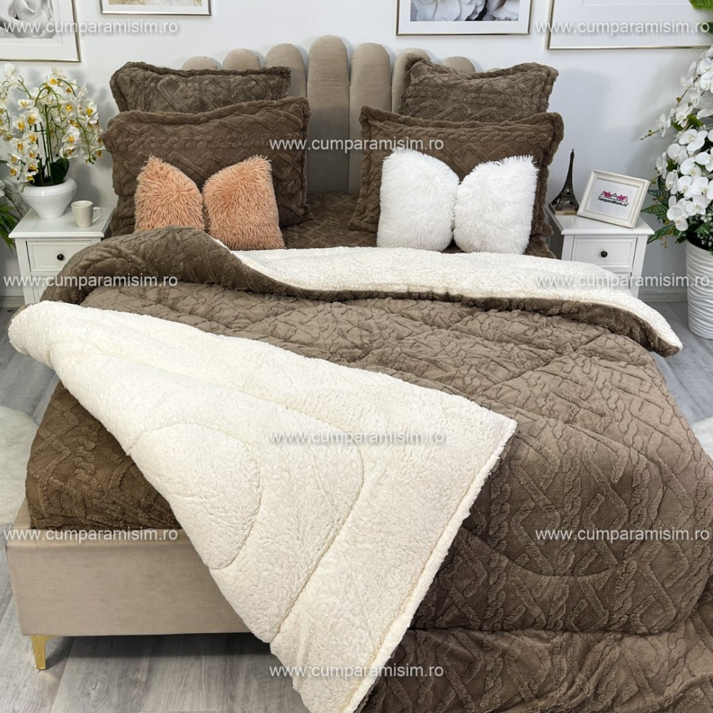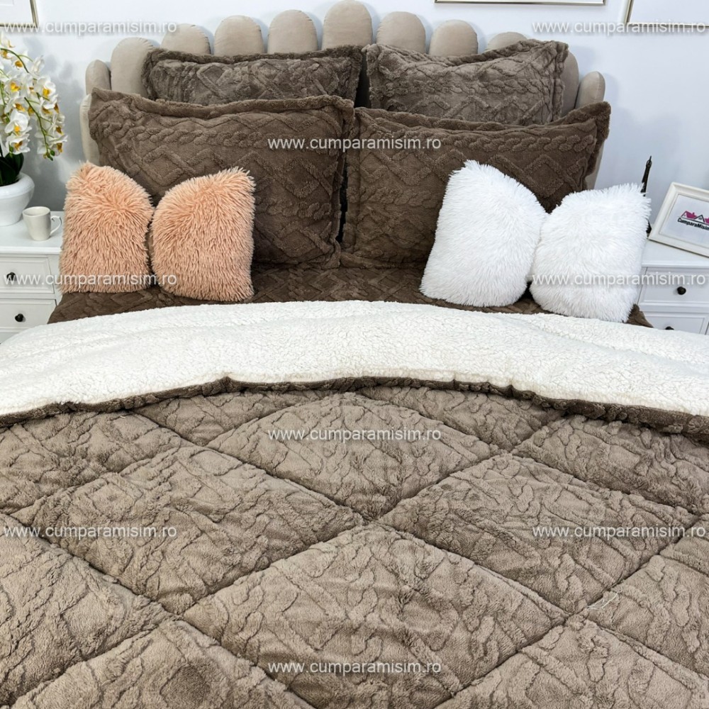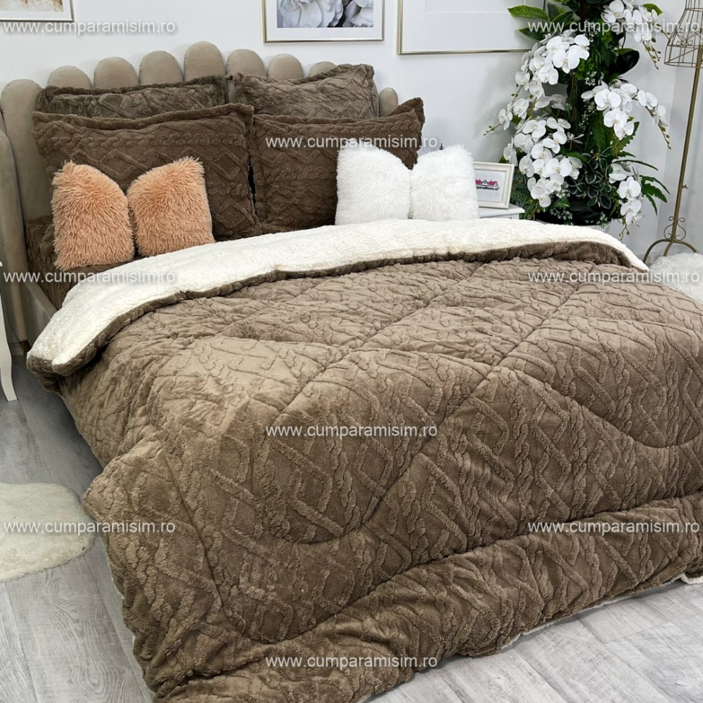 Pilota CoCoLiNo Sherpa tip Tricotaj cu blanita, matlasata, 200x230cm, bej inchis, cod produs: YOP100