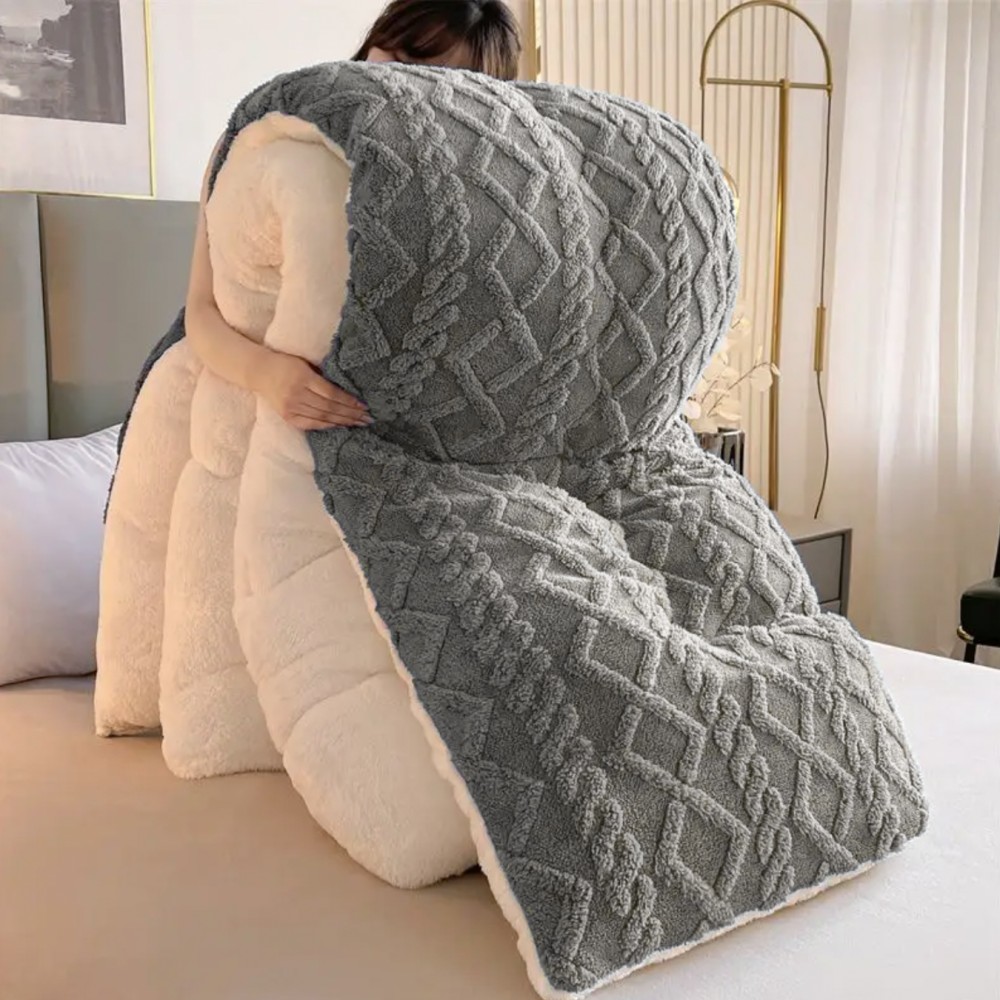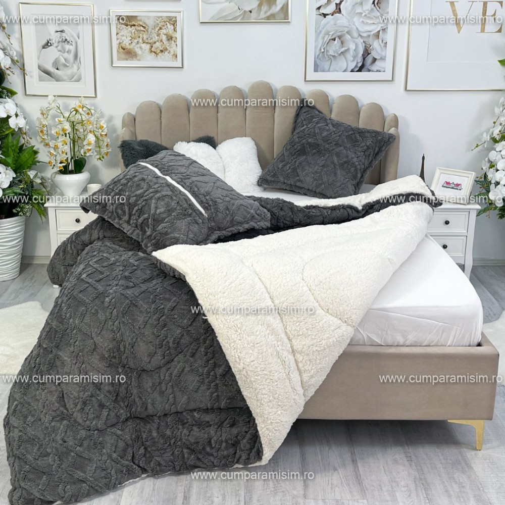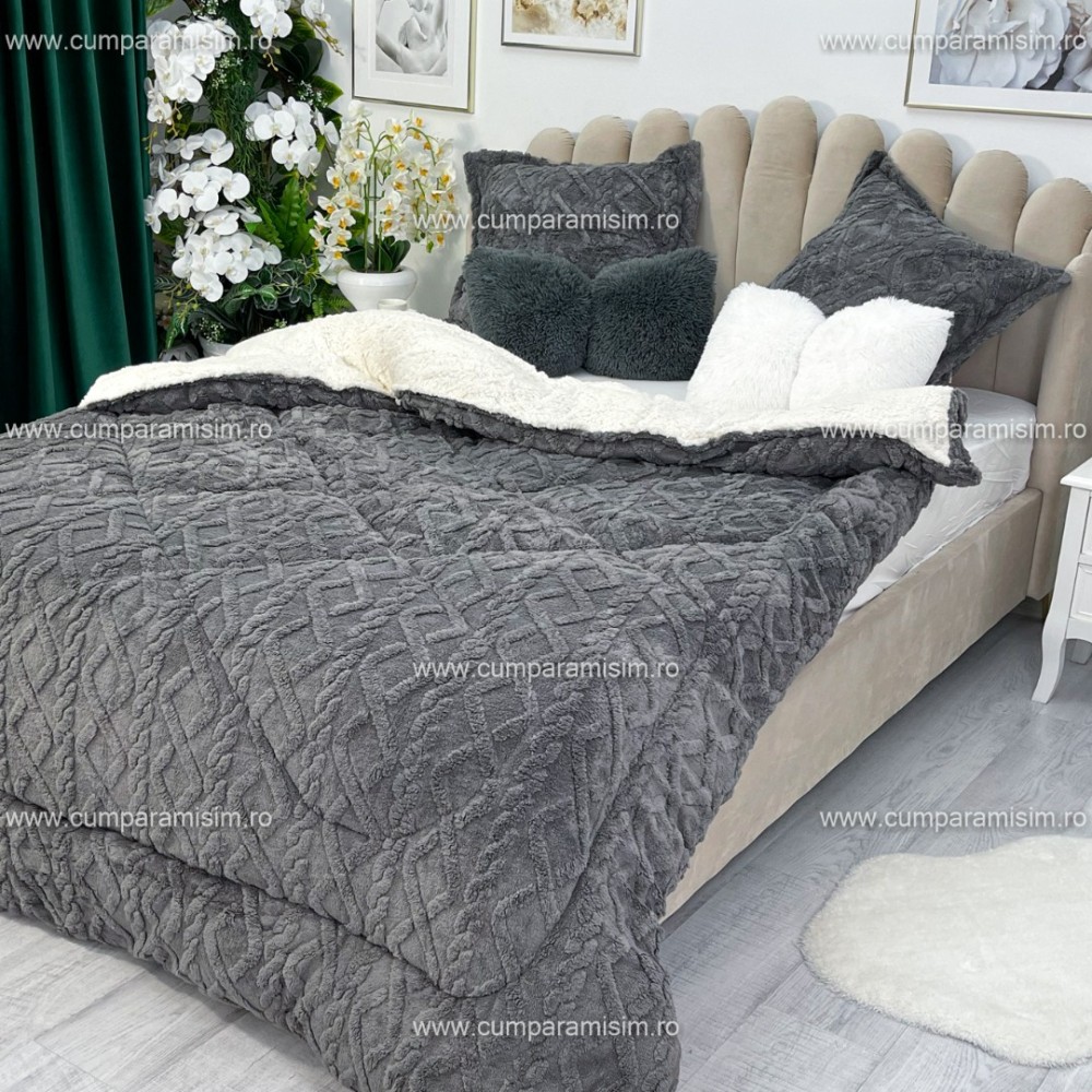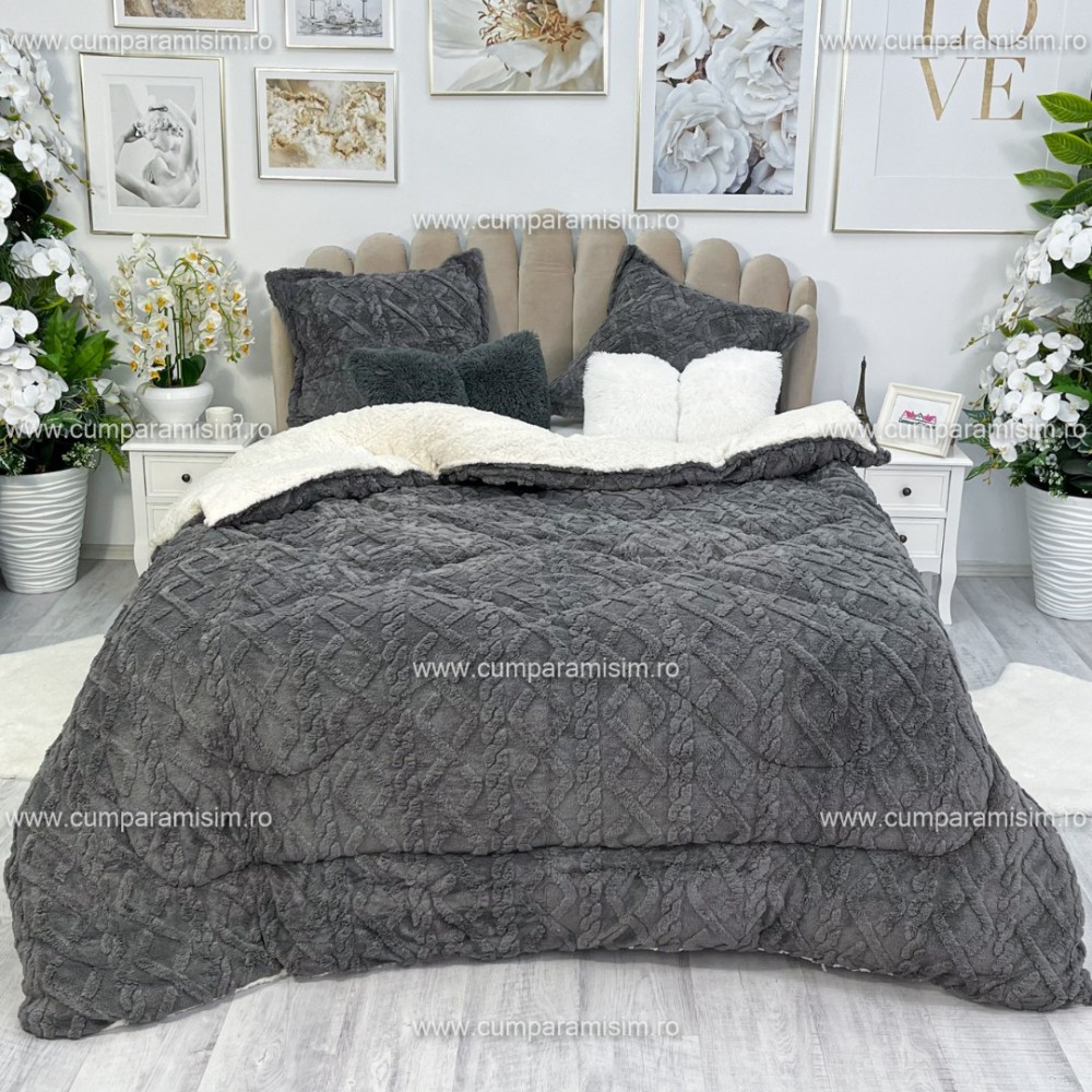 Pilota CoCoLiNo Sherpa tip Tricotaj cu blanita, matlasata, 200x230cm, gri, cod produs: YOP110