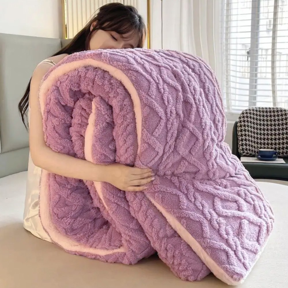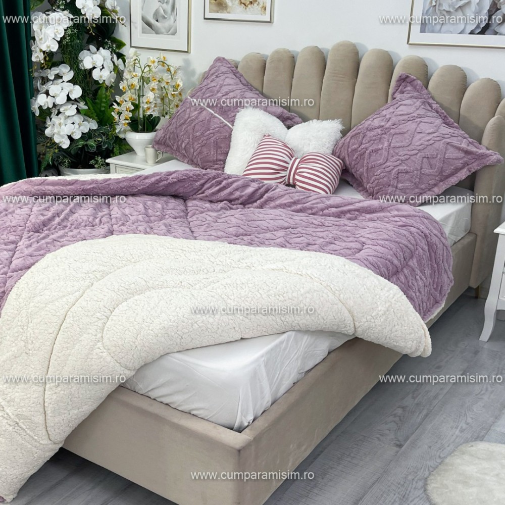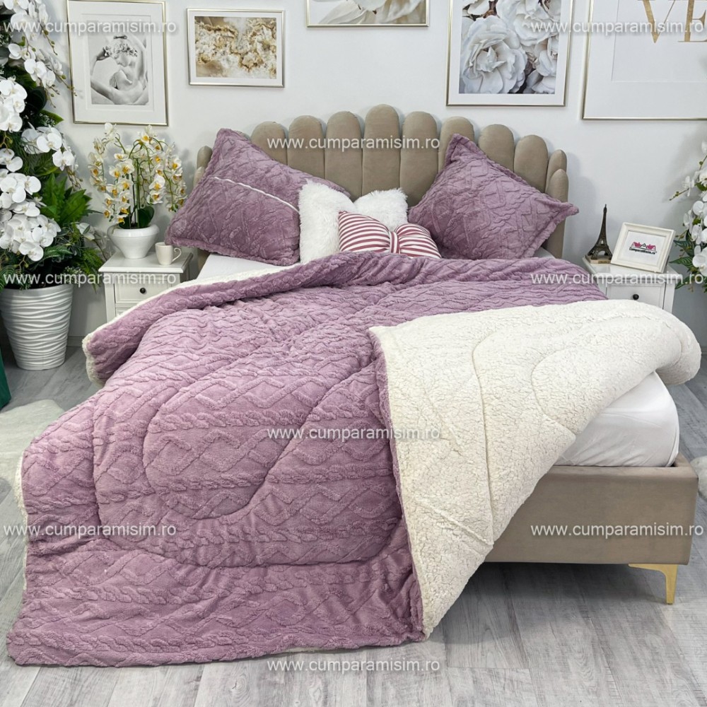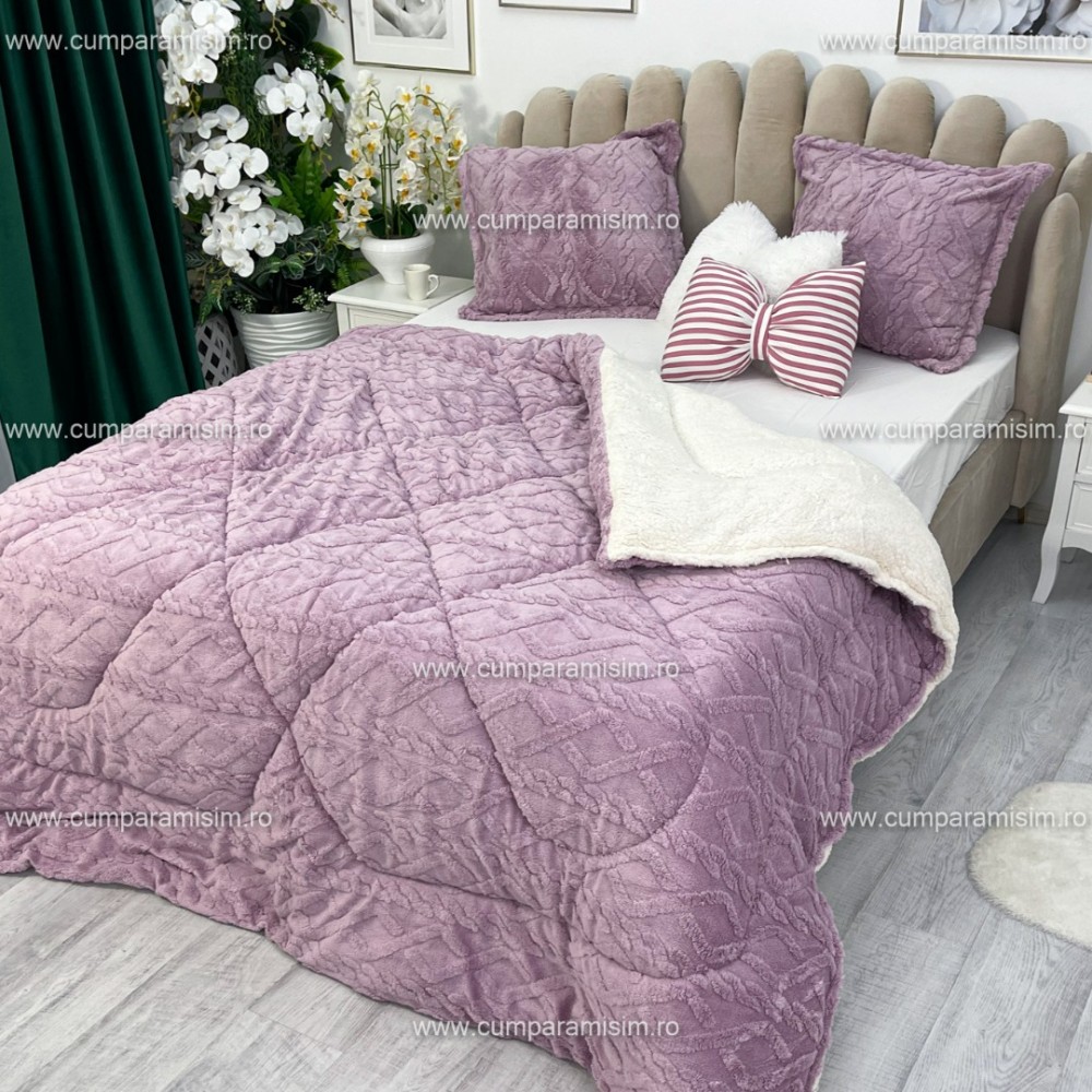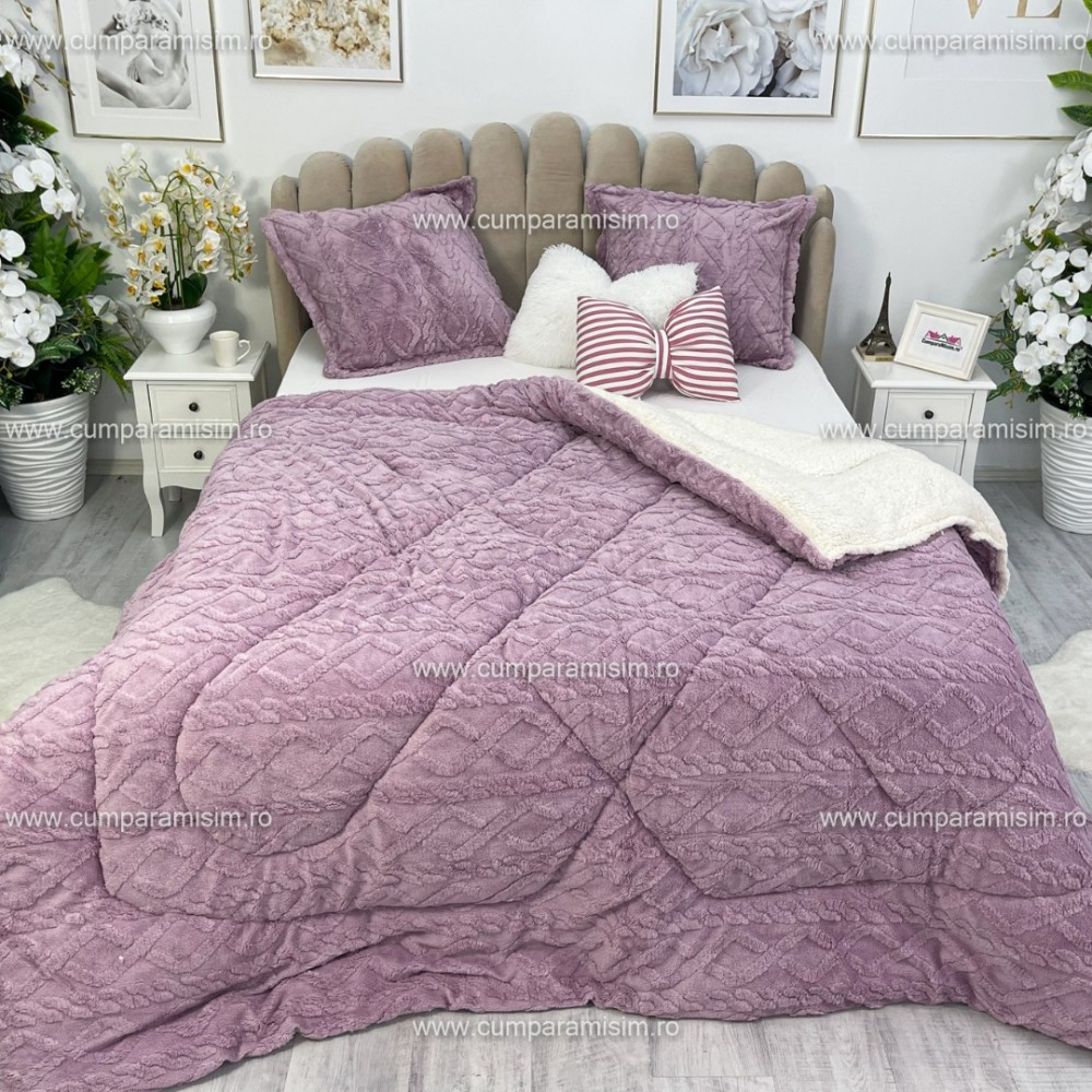 Pilota CoCoLiNo Sherpa tip Tricotaj cu blanita, matlasata, 200x230cm, lila, cod produs: YOP106