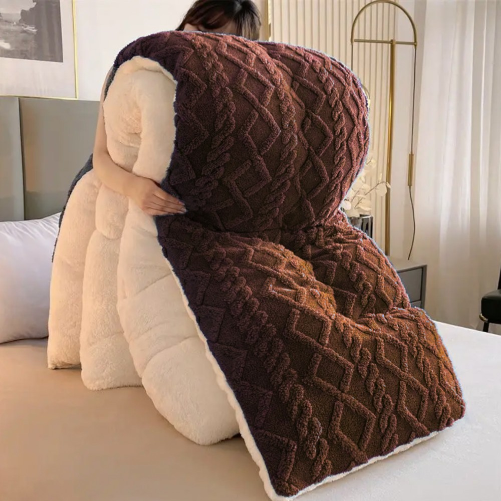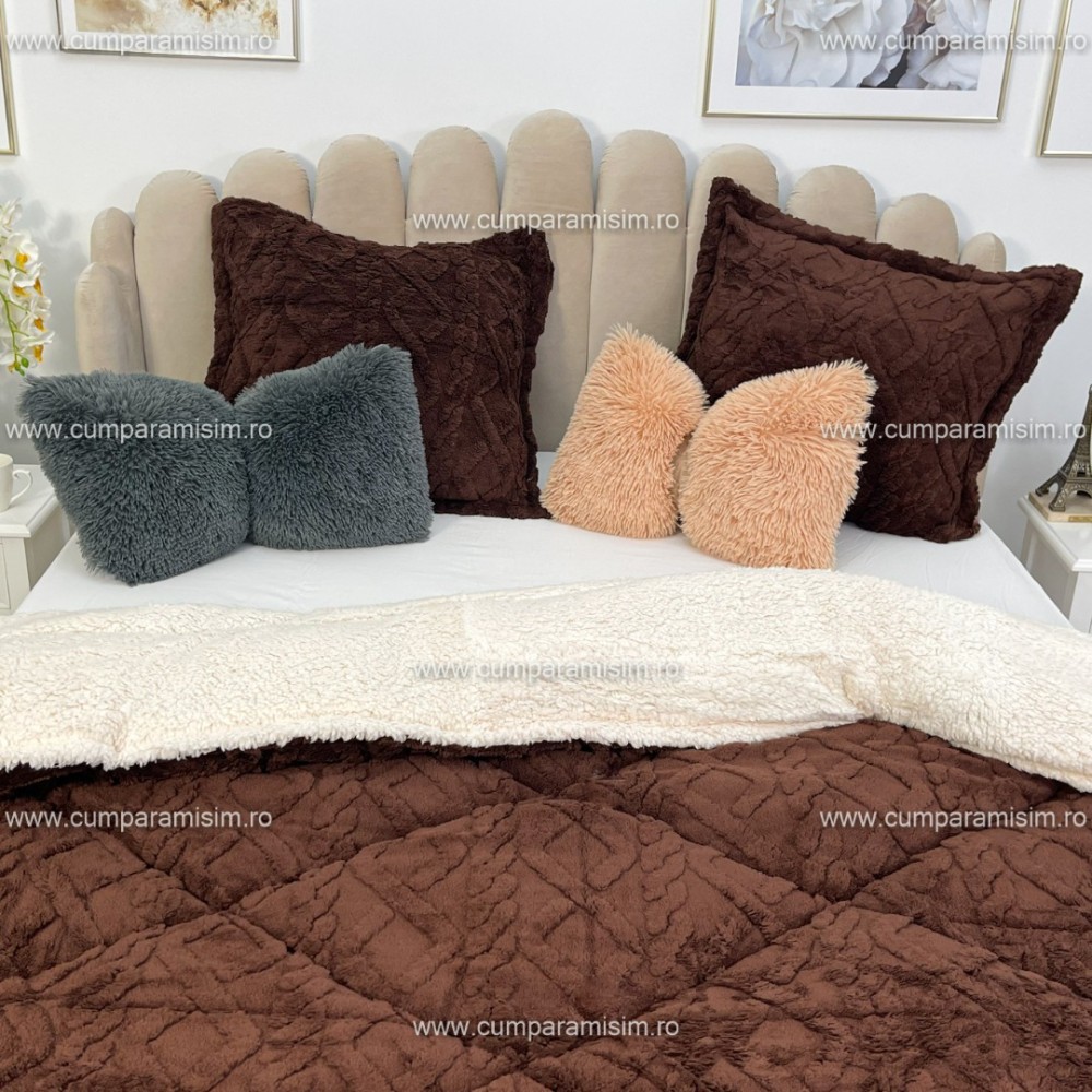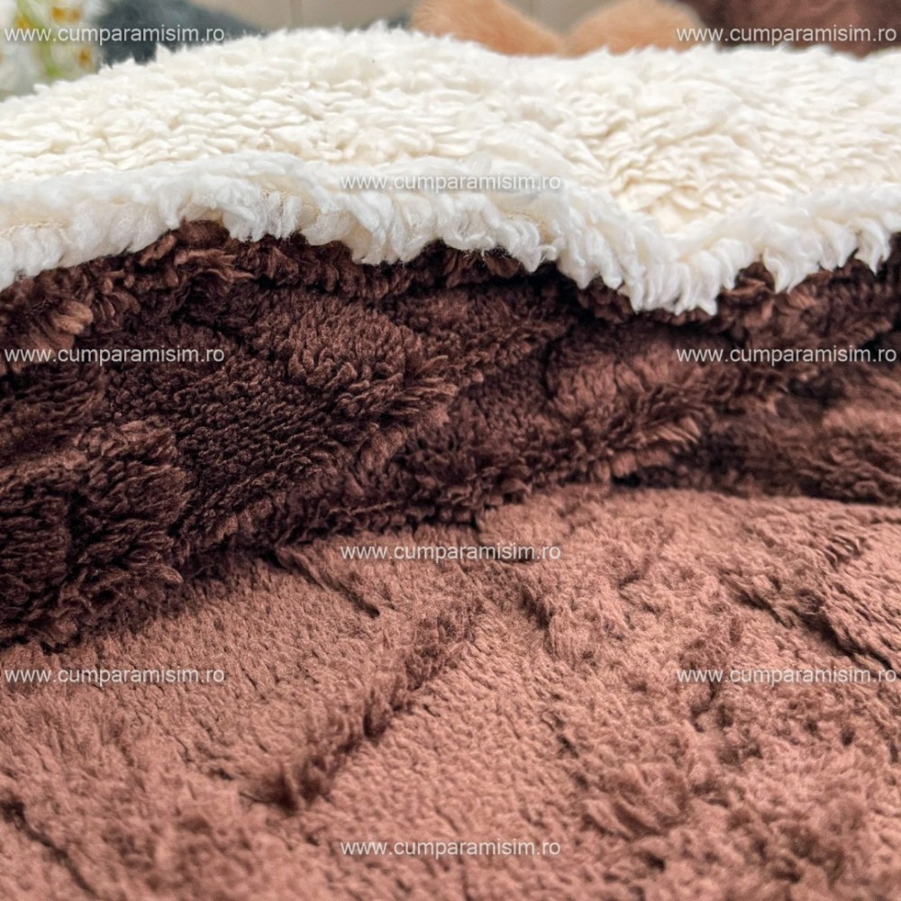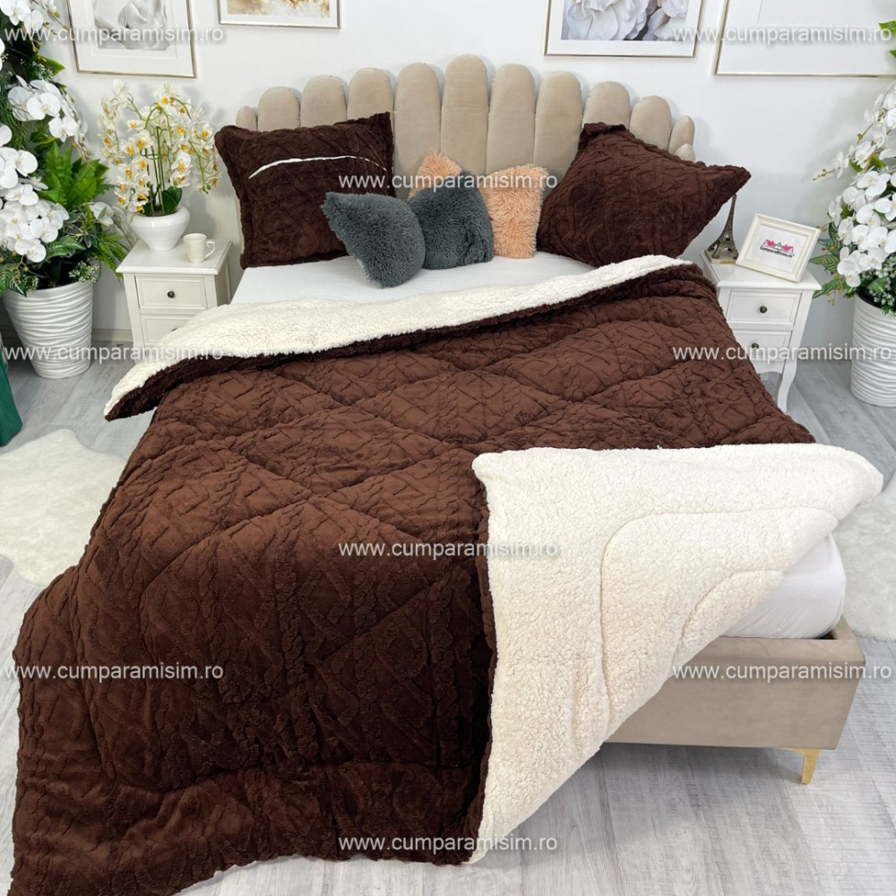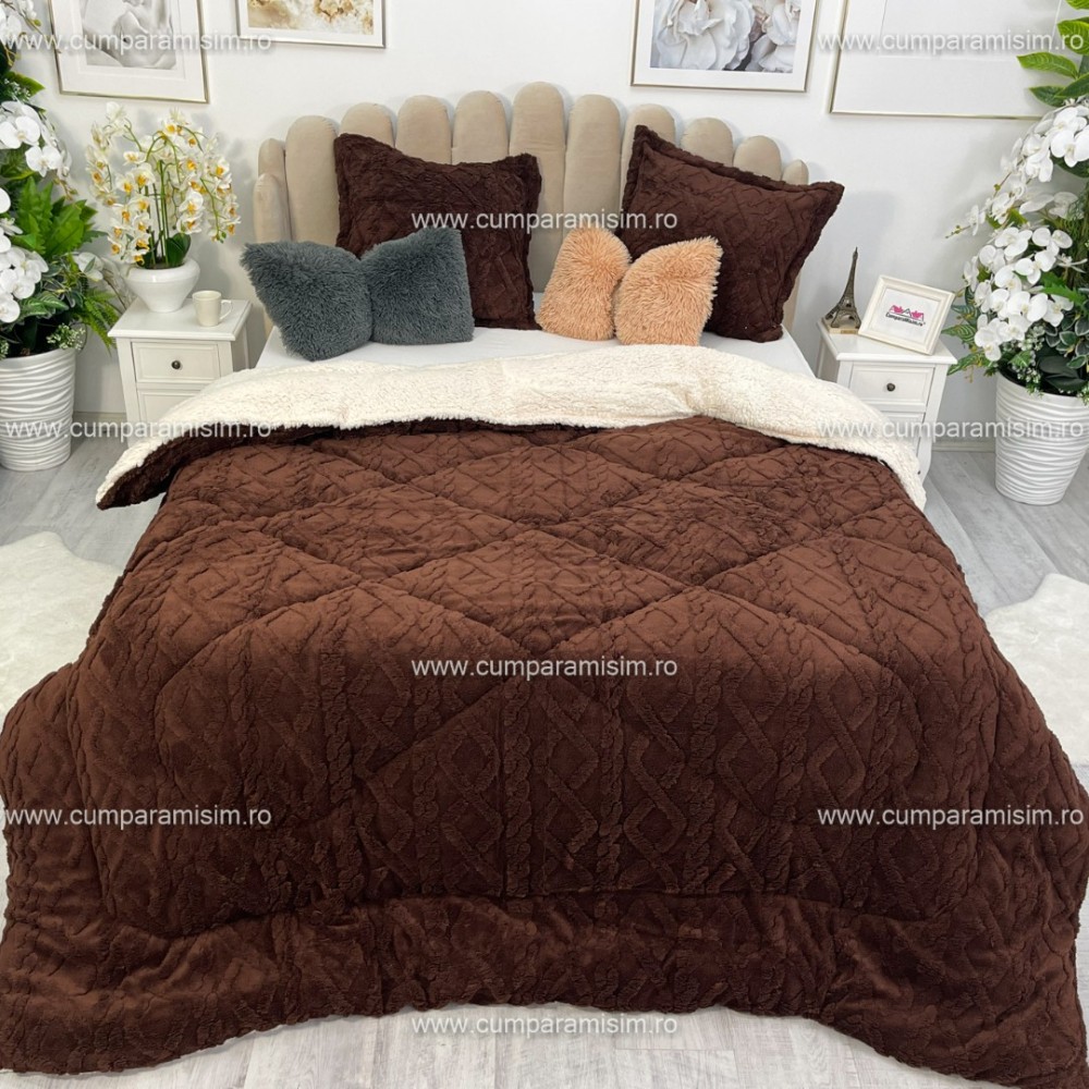 Pilota CoCoLiNo Sherpa tip Tricotaj cu blanita, matlasata, 200x230cm, maro deschis, cod produs: YOP112