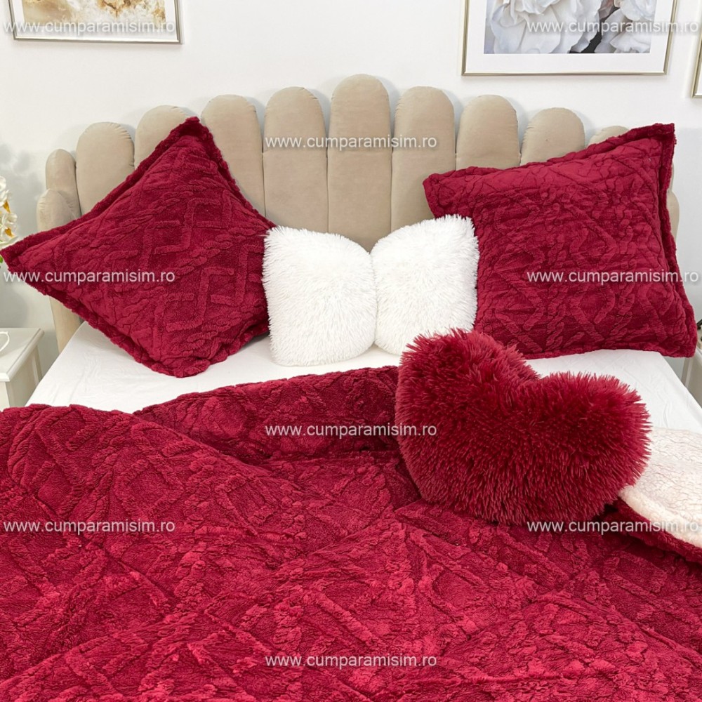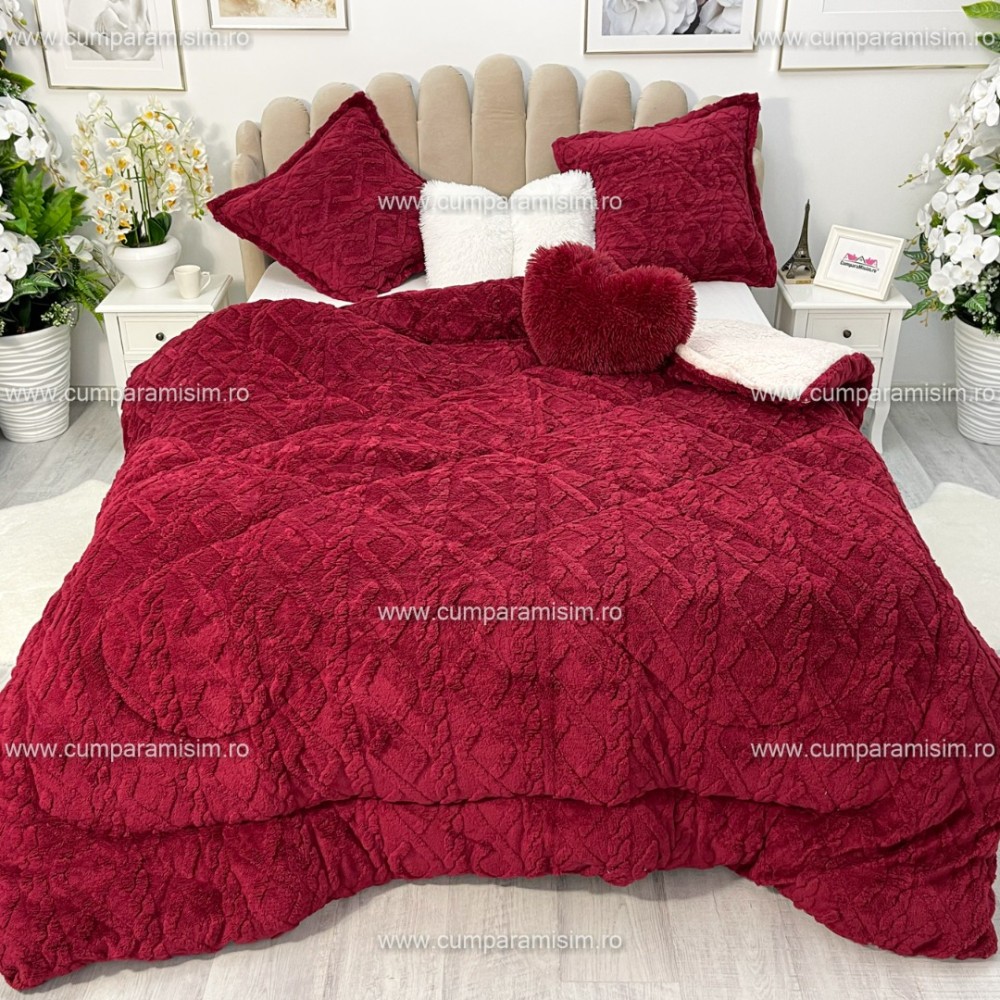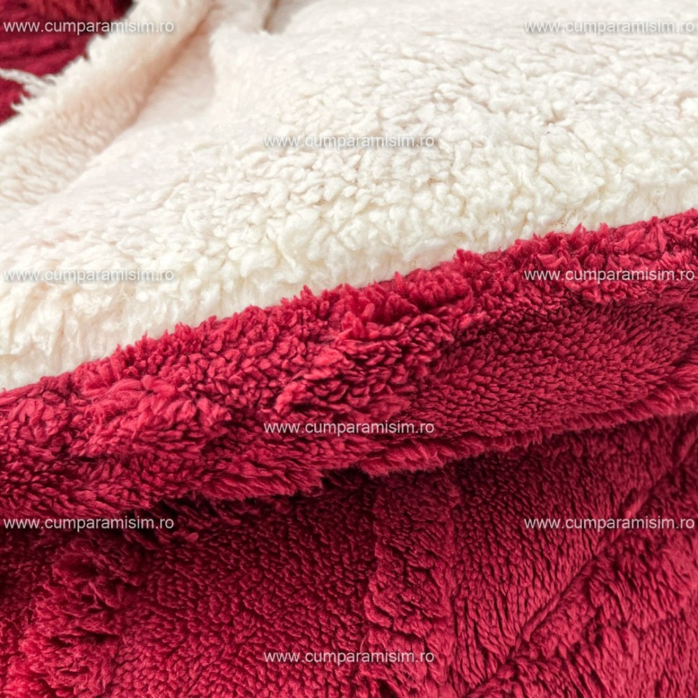 Pilota CoCoLiNo Sherpa tip Tricotaj cu blanita, matlasata, 200x230cm, visiniu, cod produs: YOP109