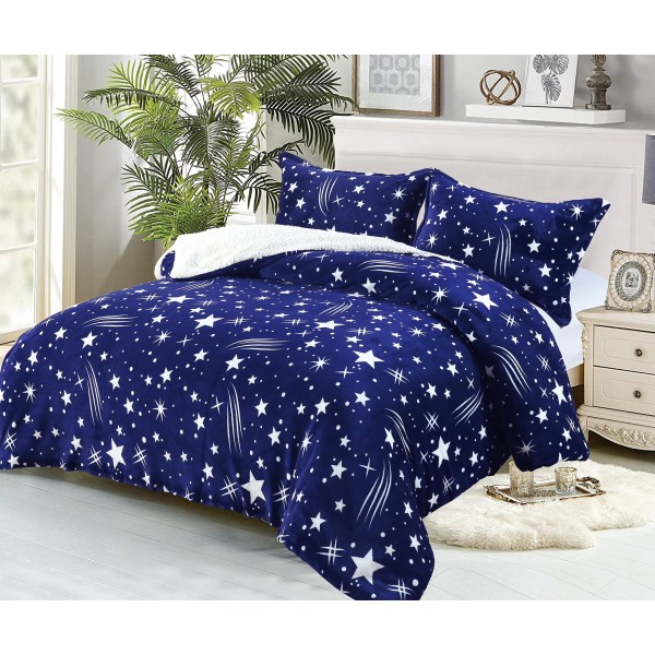 Pilotã Groasã CoCoLiNo, 200x230cm, cu Blãnita si 2 fete de pernã, 50x70cm, Albastru-Alb, stelute, cod produs: YOP2