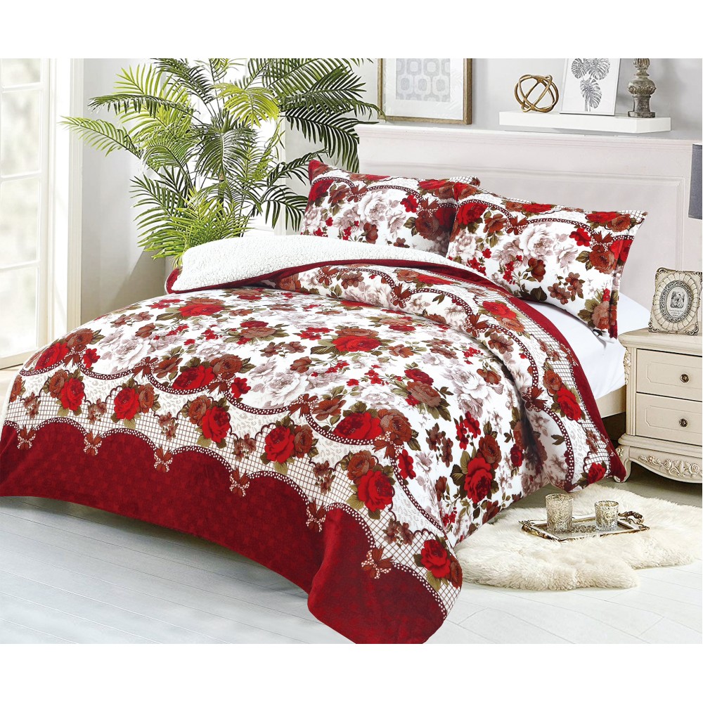 Pilotã Groasã CoCoLiNo, 200x230cm, cu Blãnita si 2 fete de pernã, 50x70cm, Alb-Rosu, model floral, cod produs: YOP10