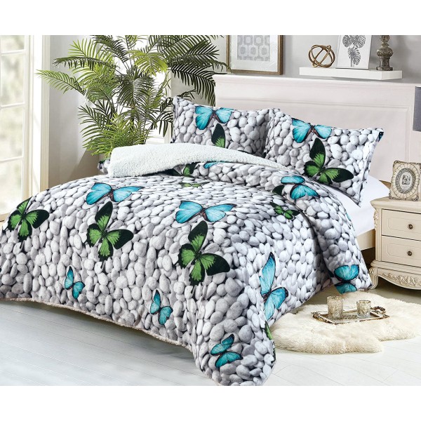 Pilotã Groasã CoCoLiNo, 200x230cm, cu Blãnita si 2 fete de pernã, 50x70cm, Gri-Multicolor, fluturi, pietre, cod produs: YOP1