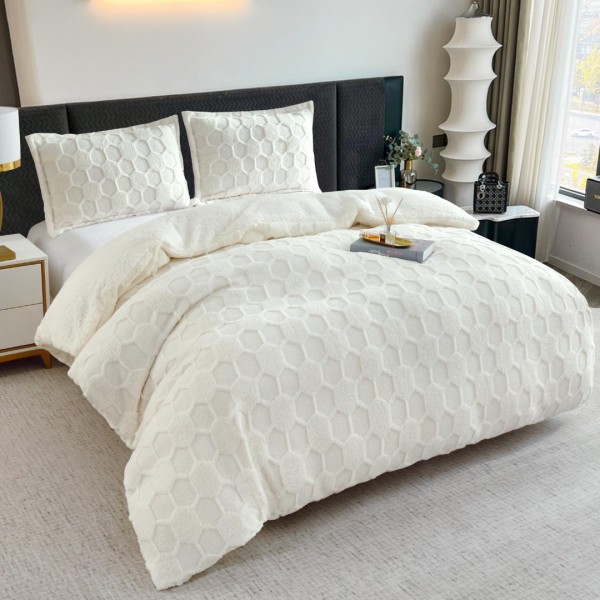 Pilota Groasă Cocolino Gofrat 3D Model în Relief cu Fagure și Dos din Blăniță Sherpa, Umplutură Vatelină Siliconică, 200x230 cm + 2 Fețe de Pernă 50x70 cm - Căldură și Rafinament pentru Un Somn Odihnitor, Ivoire, cod produs: BCC-PC404