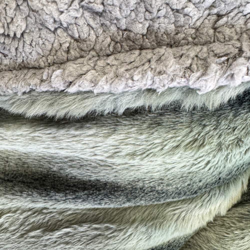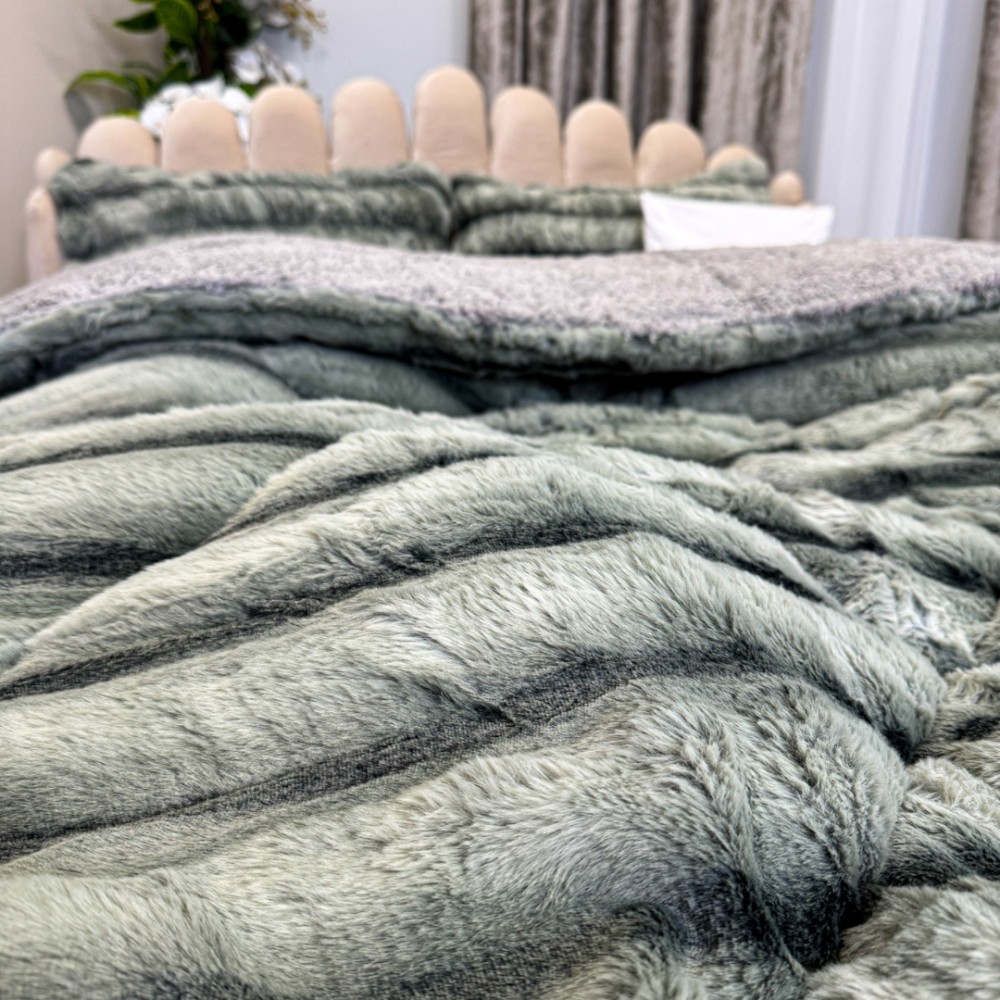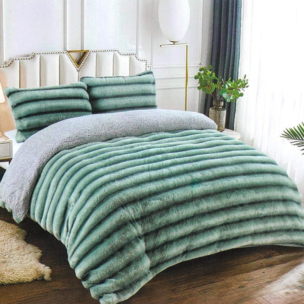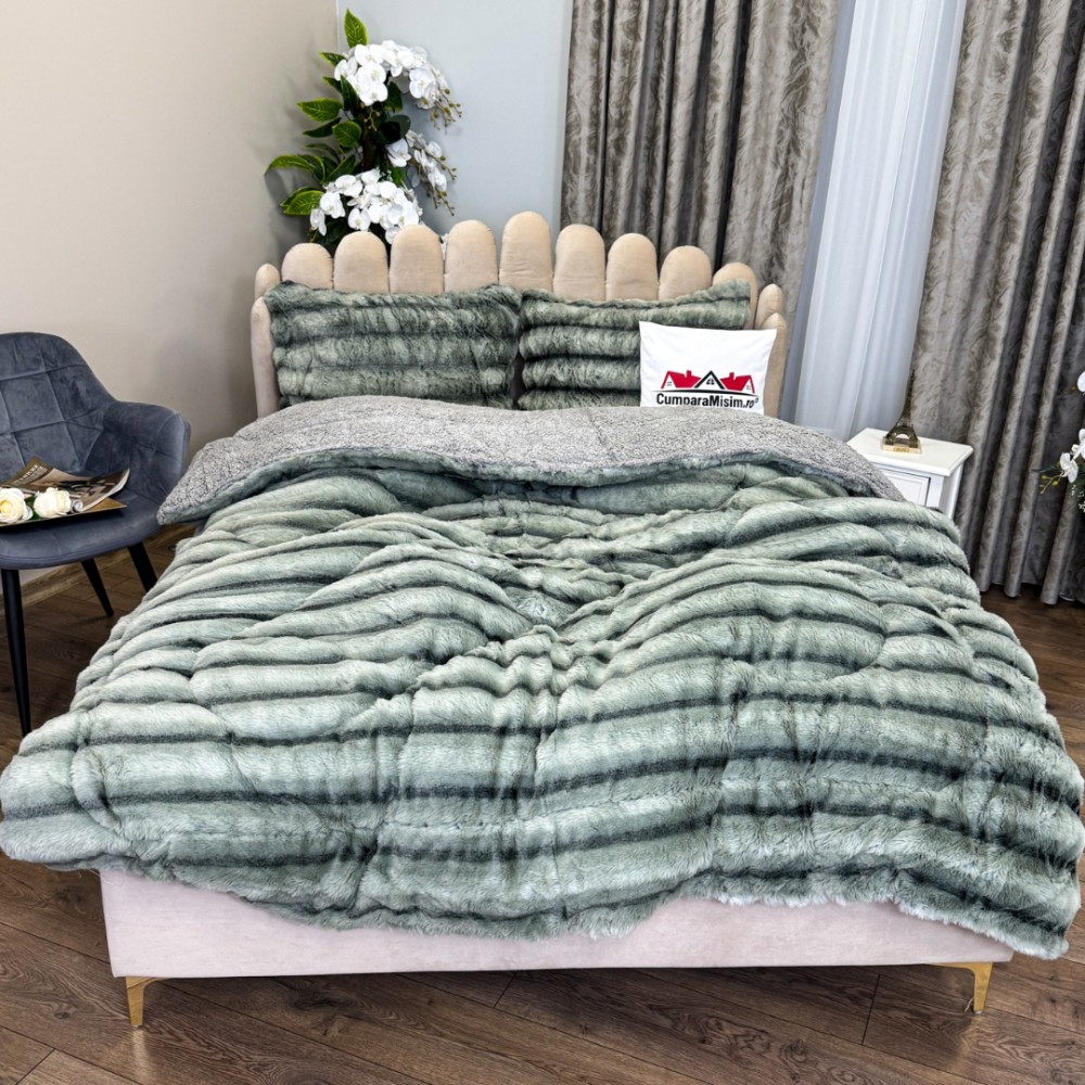 Pilota Groasă cu Fața din Blăniță Artificială de Iepure Dungat și Dos din Blăniță Sherpa, Umplutură Vatelină Siliconică, 200x230 cm + 2 fete de perna 50x70cm - Confort Termic Premium și Eleganță pentru Nopți Racoroase, Menta, Cocolino, cod produs: CSA-PF13