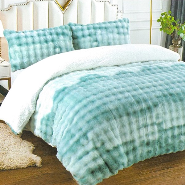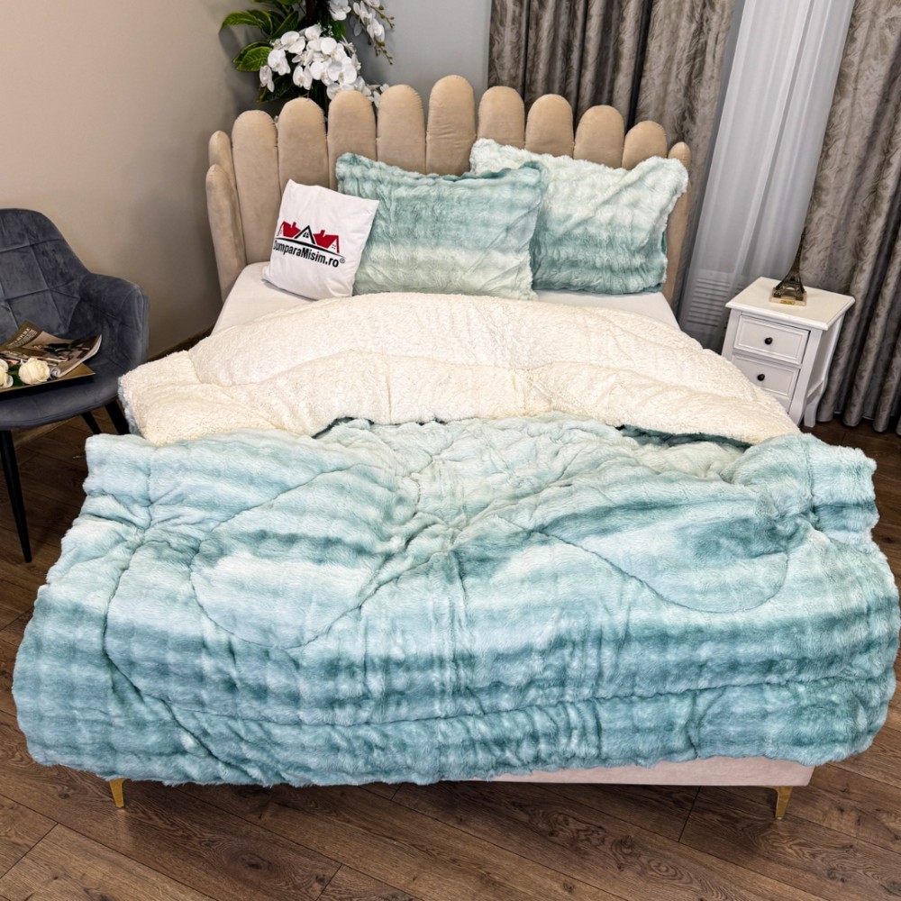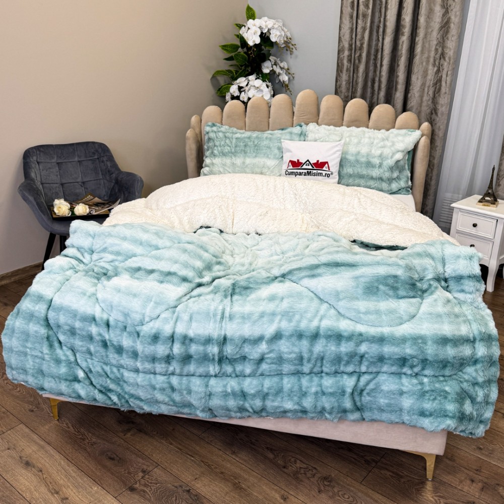 Pilota Groasă cu Fața din Blăniță Artificială de Iepure și Dos din Blăniță Sherpa Alba, Umplutură Vatelină Siliconică, 200x230 cm + 2 fete de perna 50x70cm - Confort Termic Premium și Eleganță pentru Nopți Racoroase, Alb, Menta, Cocolino, cod produs: CSA-PF06