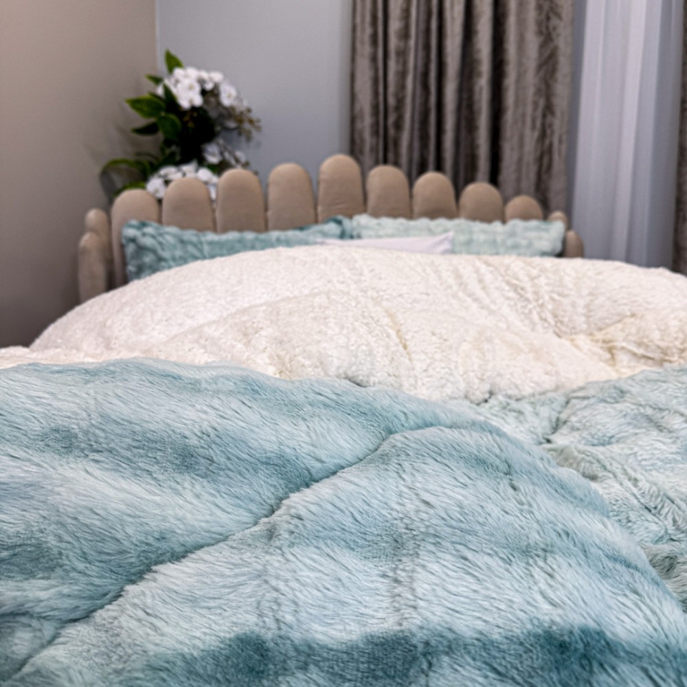 Pilota Extra Pufoasă din Blăniță Artificială de Iepure în Valuri și Dos din Blăniță Sherpa, Umplutură Vatelină Siliconică – Eleganță și Căldură Desăvârșită pentru Nopți Recoroase