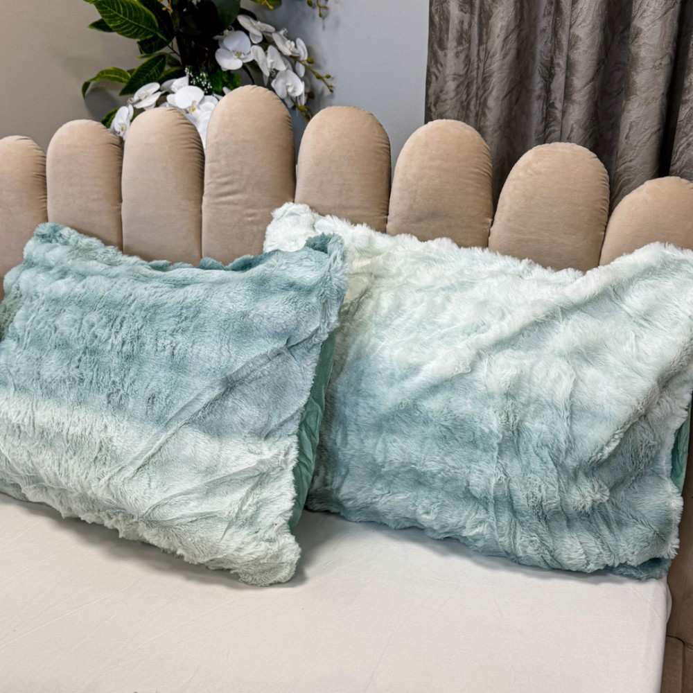 Setul include pilota de dimensiuni mari, 200x230 cm, potrivită pentru un pat dublu, și două fețe de pernă de 50x70 cm, realizate din aceeași blăniță artificială de iepure în valuri, pentru un aspect coordonat și elegant în dormitorul tău.