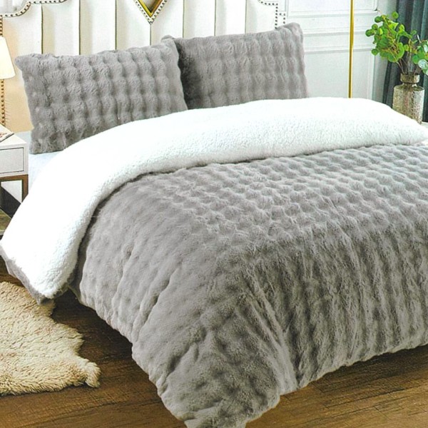 Pilota Groasă cu Fața din Blăniță Artificială de Iepure și Dos din Blăniță Sherpa Alba, Umplutură Vatelină Siliconică, 200x230 cm + 2 fete de perna 50x70cm - Confort Termic Premium și Eleganță pentru Nopți Racoroase, Gri, Cocolino, cod produs: CSA-PF08