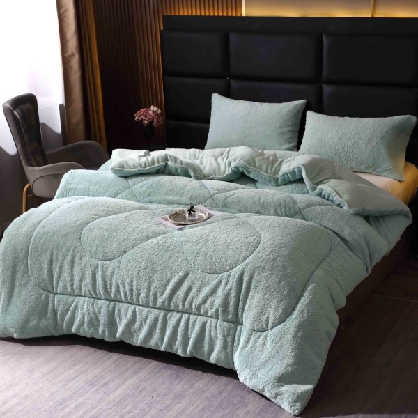 Pilota Groasă cu Fața din Blăniță Artificială de Iepure și Dos din CoCoLiNo Pufos, Umplutură Vatelină Siliconică, 200x230 cm + 2 fete de perna 50x70cm - Confort Termic Premium și Eleganță pentru Nopți Racoroase, Aqua, cod produs: BCC-PC704