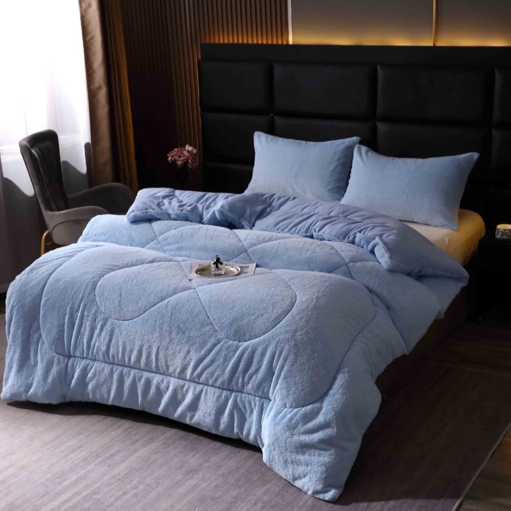 Pilota Groasă cu Fața din Blăniță Artificială de Iepure și Dos din CoCoLiNo Pufos, Umplutură Vatelină Siliconică, 200x230 cm + 2 fete de perna 50x70cm - Confort Termic Premium și Eleganță pentru Nopți Racoroase, Bleu, cod produs: BCC-PC705