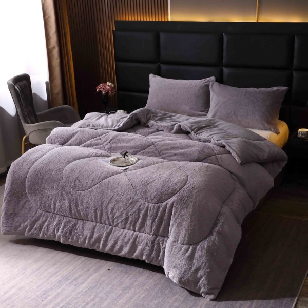 Pilota Groasă cu Fața din Blăniță Artificială de Iepure și Dos din CoCoLiNo Pufos, Umplutură Vatelină Siliconică, 200x230 cm + 2 fete de perna 50x70cm - Confort Termic Premium și Eleganță pentru Nopți Racoroase, Gri, cod produs: BCC-PC703