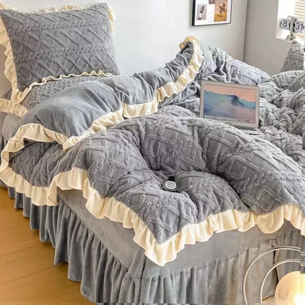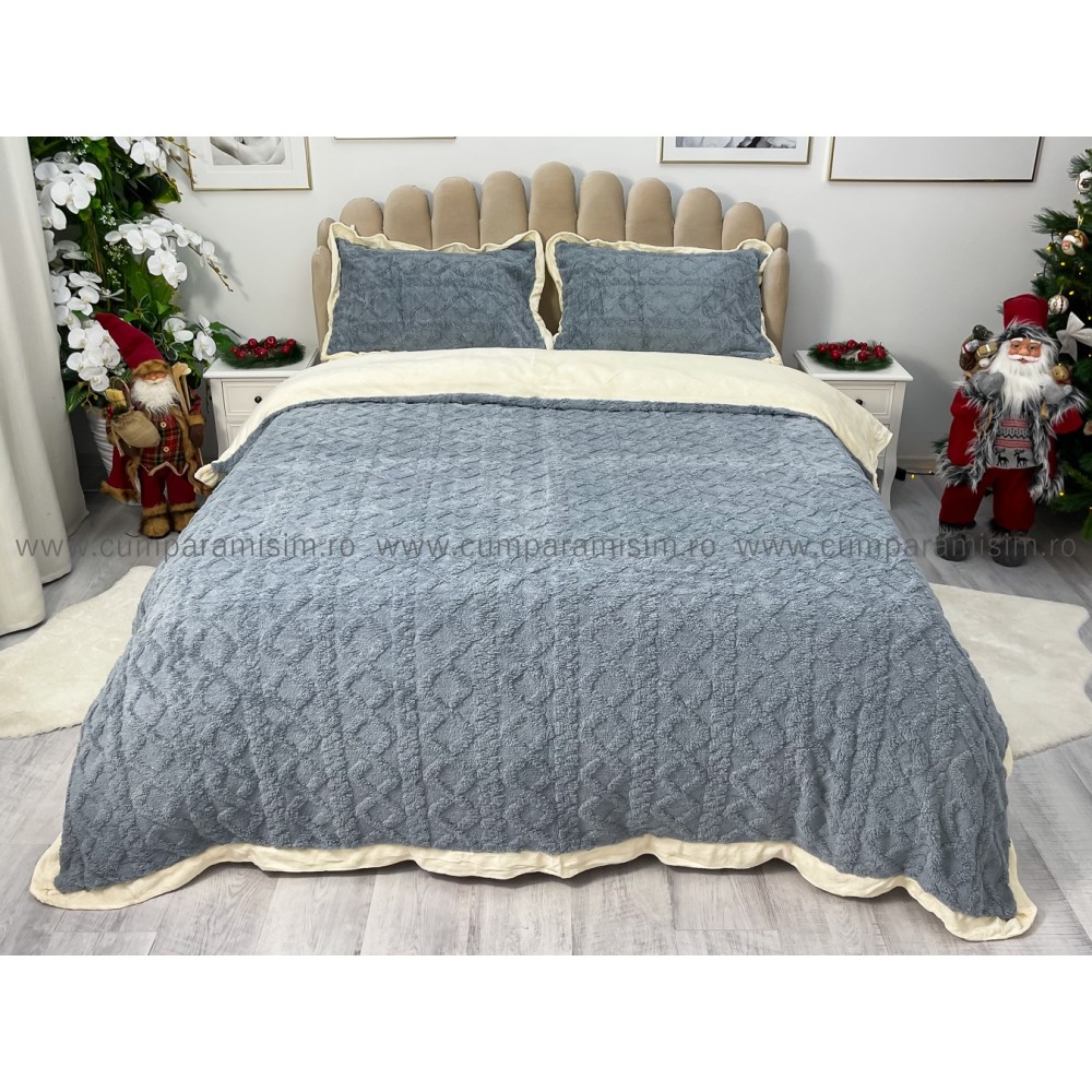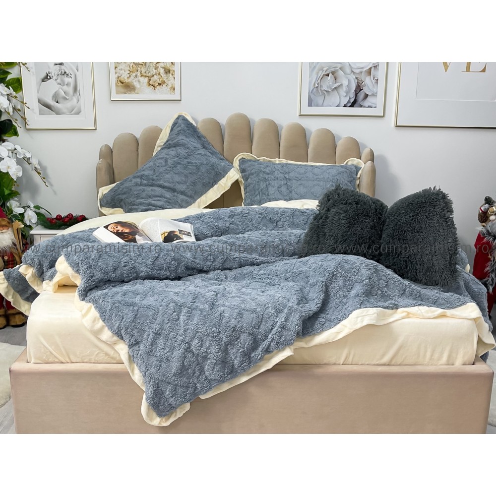 Lenjerie pentru pat dublu pufoasa CoCoLiNo cu VoLaNaSe, tip tricotaj, 4 piese, Gri deschis, cod produs: EXP109