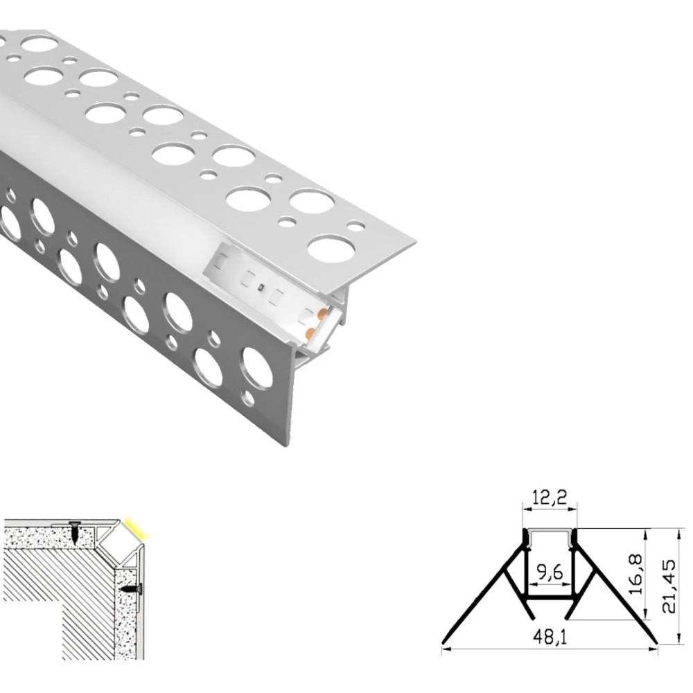 Profil LED Incastrat, Colt Exterior, Lungime 2m, Aluminiu.