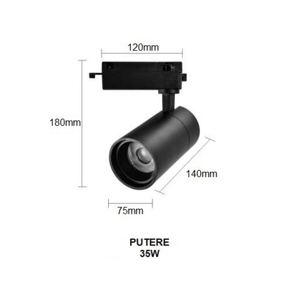 • Proiectoarele LED pe sina de 35W cu o durata de viata pana la 30 000 ore au capacitatea de orientare si focalizare, deasemeni un consum de energie redus - aproximativ 80% mai putin decat un bec standart.