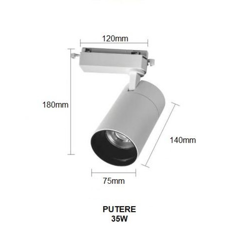 • Proiectoarele LED pe sina de 35W cu o durata de viata pana la 30 000 ore au capacitatea de orientare si focalizare, deasemeni un consum de energie redus - aproximativ 80% mai putin decat un bec standart.