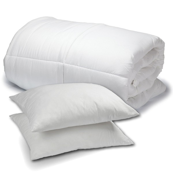 SET pilota si perne confectionate din microfibra de culoare alba cu umplutura din vatelina siliconica. Vatelina siliconica revine la forma initiala dupa fiecare folosire mentinandu-si timp indelungat forma.