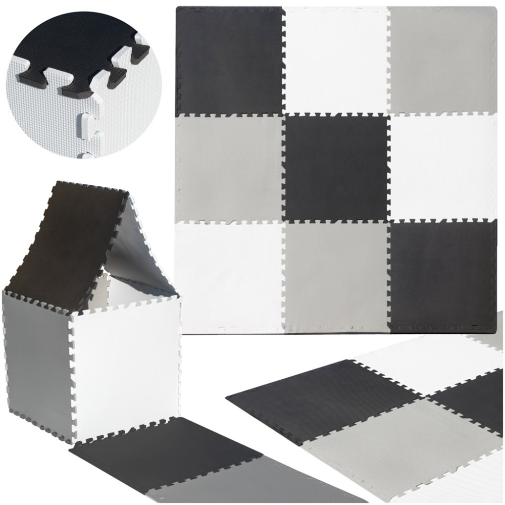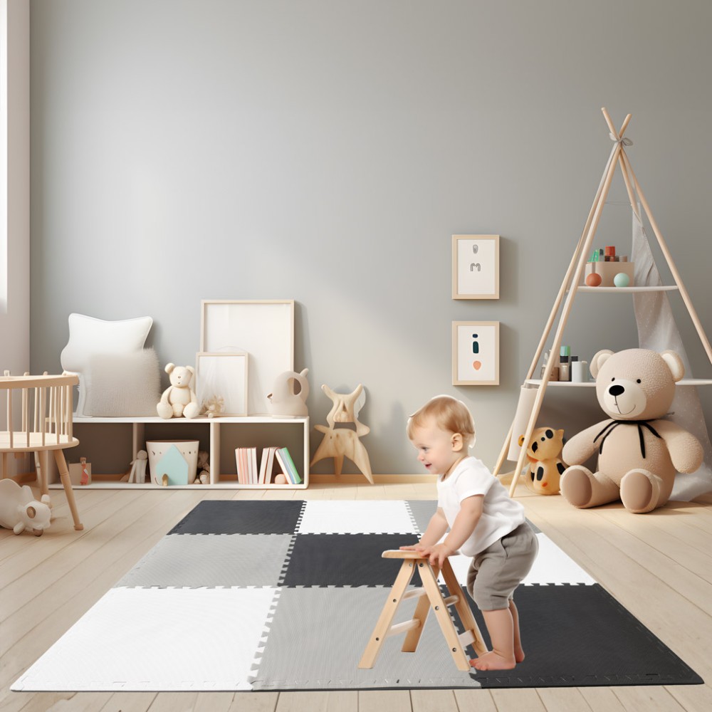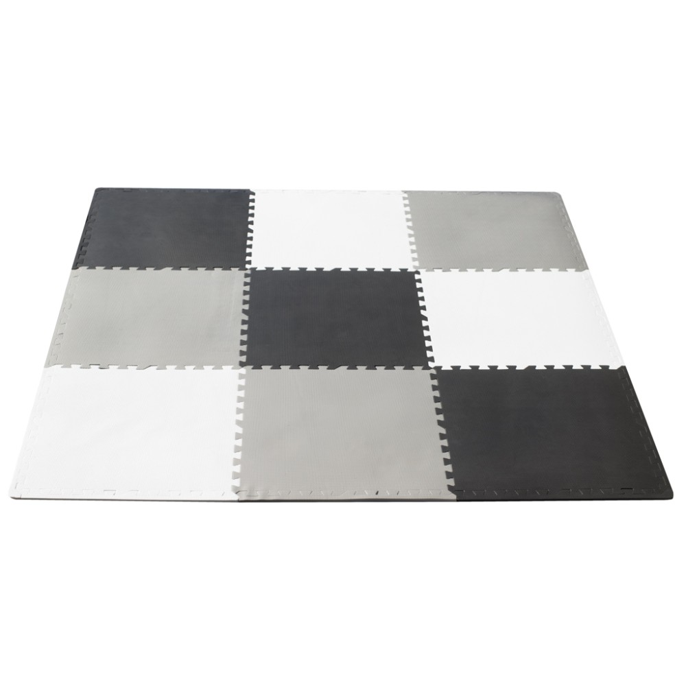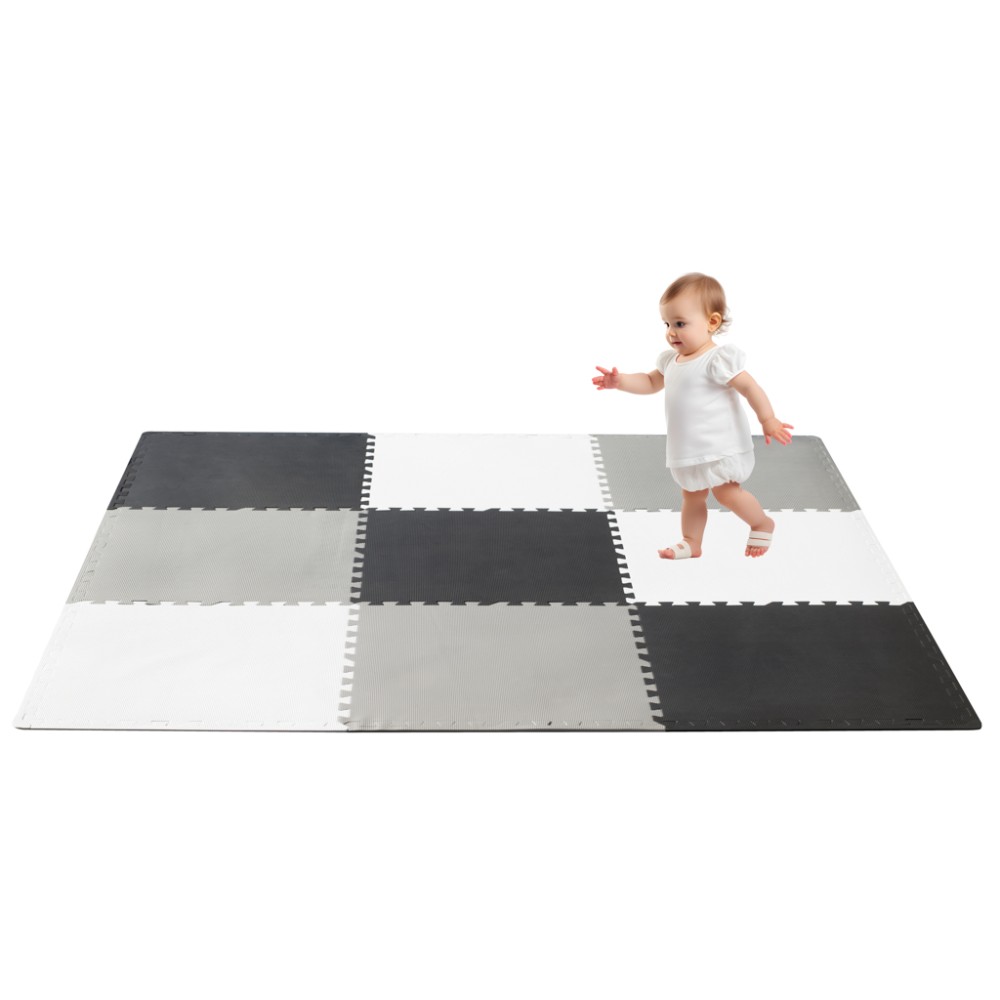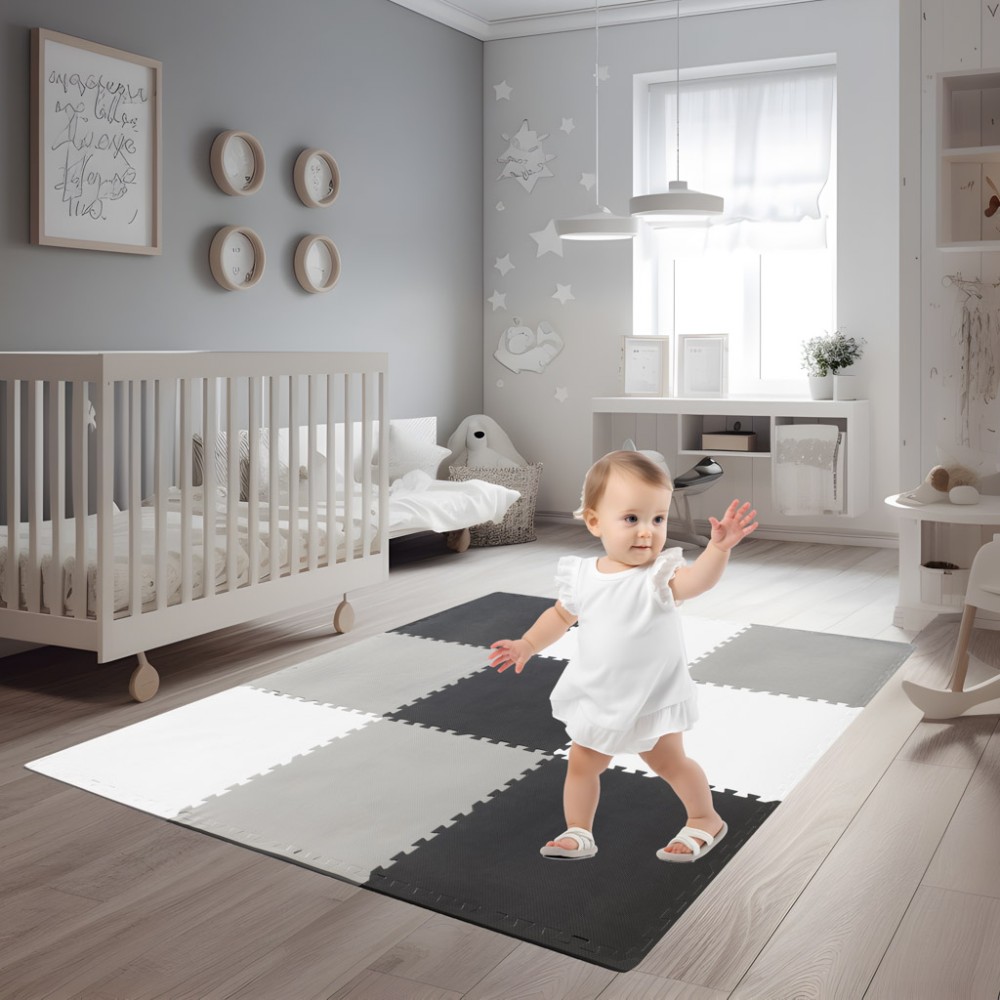 Covorașul din spumă de culoare gri și crem, cu aspect moale, îl va încuraja pe cel mic să se joace și se va potrivi perfect în orice cameră, indiferent de decor!