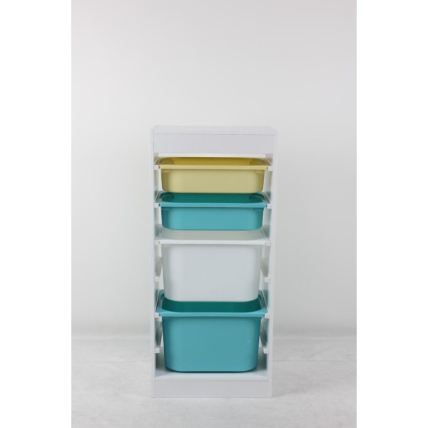 În această etapă , este de mare ajutor organizatorul de jucãrii . Designul este foarte plăcut atât pentru fete cât și pentru băieți . Are 4 sertare de dimensiuni și culori diferite, ceea ce dezvoltã și mai mult abilitatea de organizare. El poate decide ce tipuri de jucãrii depozitează în cutia galbenă,albastra si alba , învațănd să compare și diferitele dimensiuni.