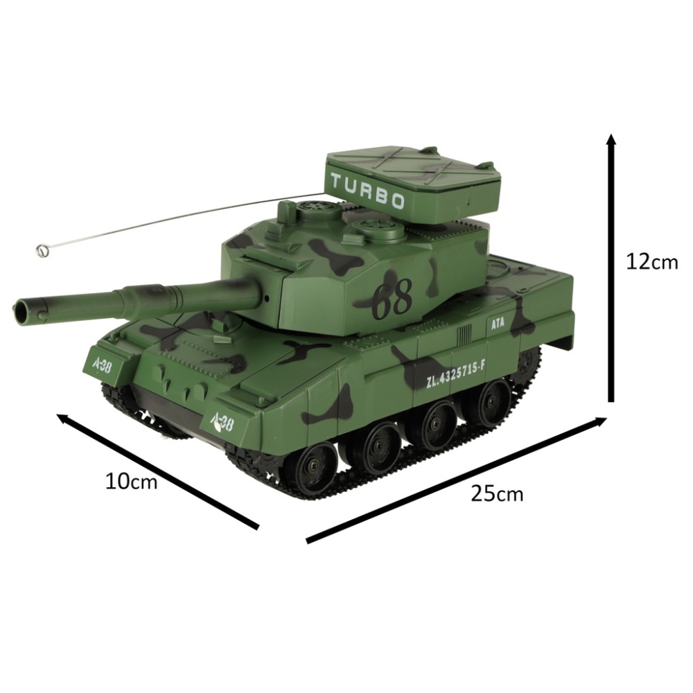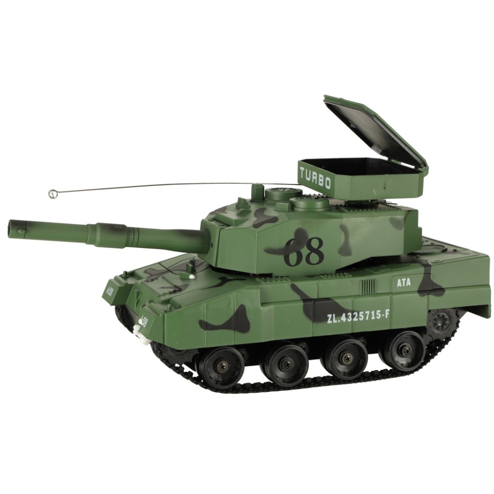 Un rezervor Fujigen unic, controlat de la distanță, cu propulsie a fiecărei piese. Tancul îndeplinește toate funcțiile esențiale ale unei mașini de război avansate: înaintează, se întoarce și trage cu bile de plastic cu diametrul de 6 mm!