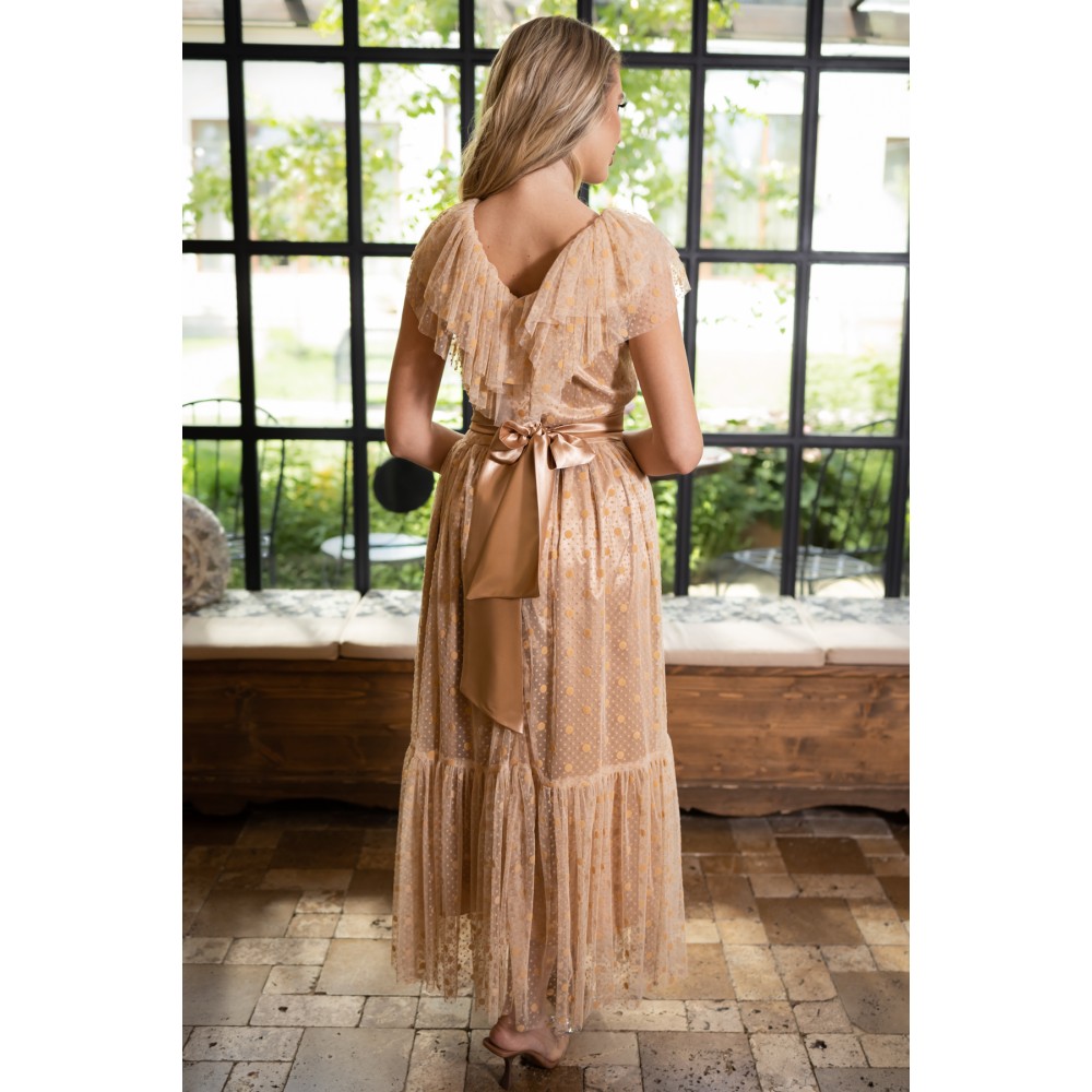 Rochie midi din Tulle si Satin, Kaya, Bej, CumparaMisim, cod produs: ATR40
