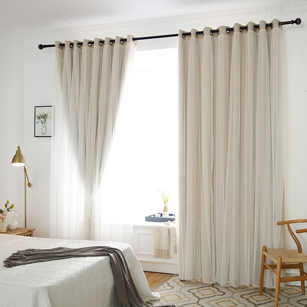 Set 2 bucati de Draperie 2 in 1 cu perdea, Bej - Alb, latime 1,4m, inaltime 2,4m, cu rejansa pt bara , CumparaMisim, cod produs: DRPs202a